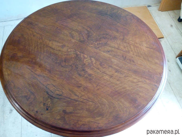 Bardzo ładne proporcje: wysokość 70 cm, średnica blatu 70 cm.