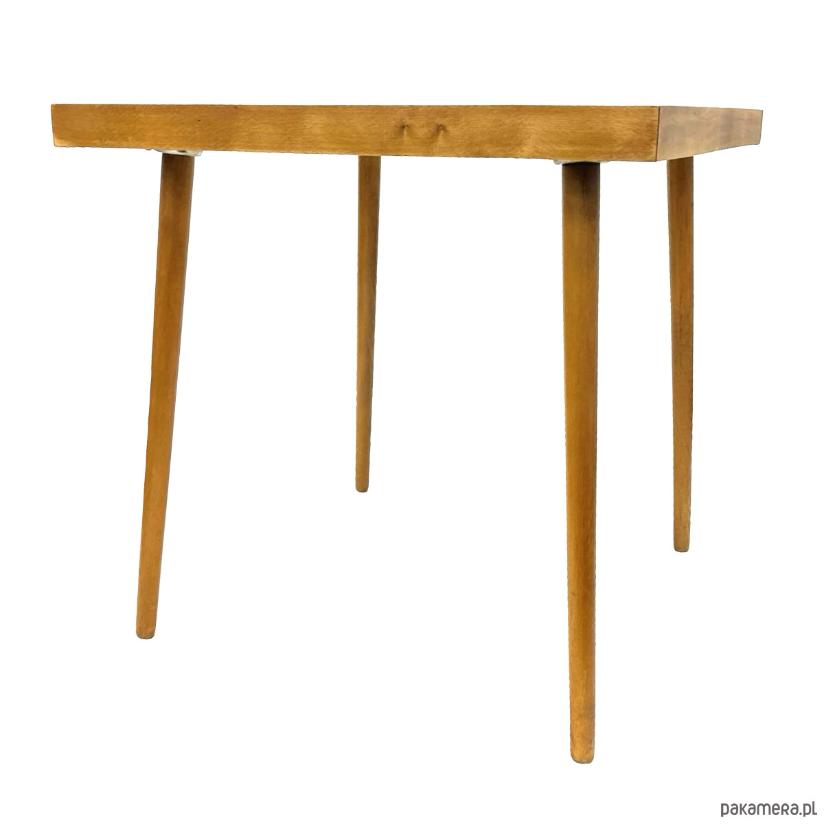 Drewniane elementy zostały poddane renowacji – oczyszczone i zabezpieczone. Blat szklany zachowany w oryginale.