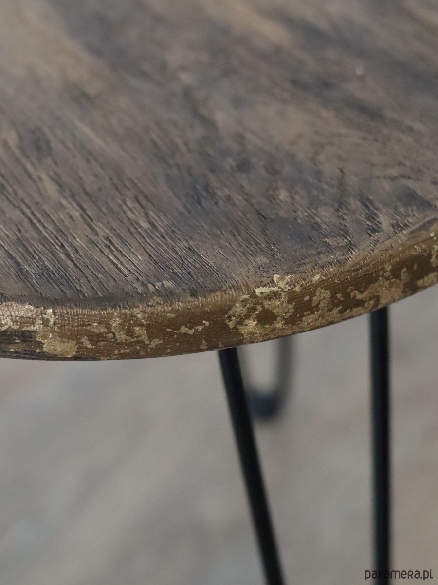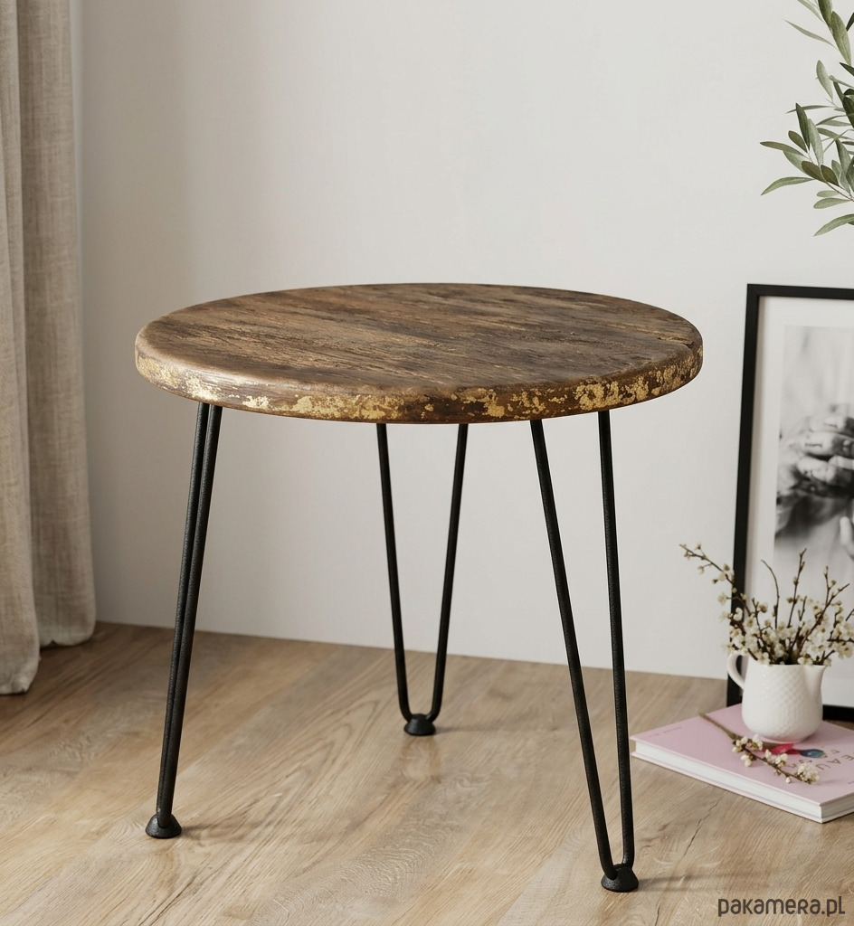 Prezentujemy wyjątkowy stolik kawowy, który łączy w sobie surowość natury z industrialnym stylem. Blat został wykonany z litego dębu, poddanego procesowi opalania, co wydobyło z drewna niesamowitą głębię koloru i podkreśliło jego naturalne usłojenie, złocony bogato. Całość została zabezpieczona wysokiej jakości lakierem satynowym, który nadaje eleganckie wykończenie i ułatwia pielęgnację.