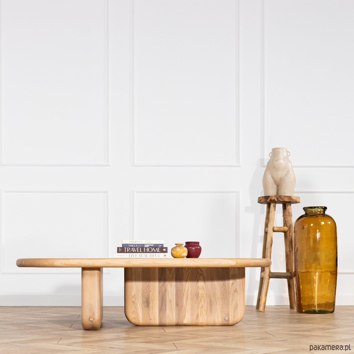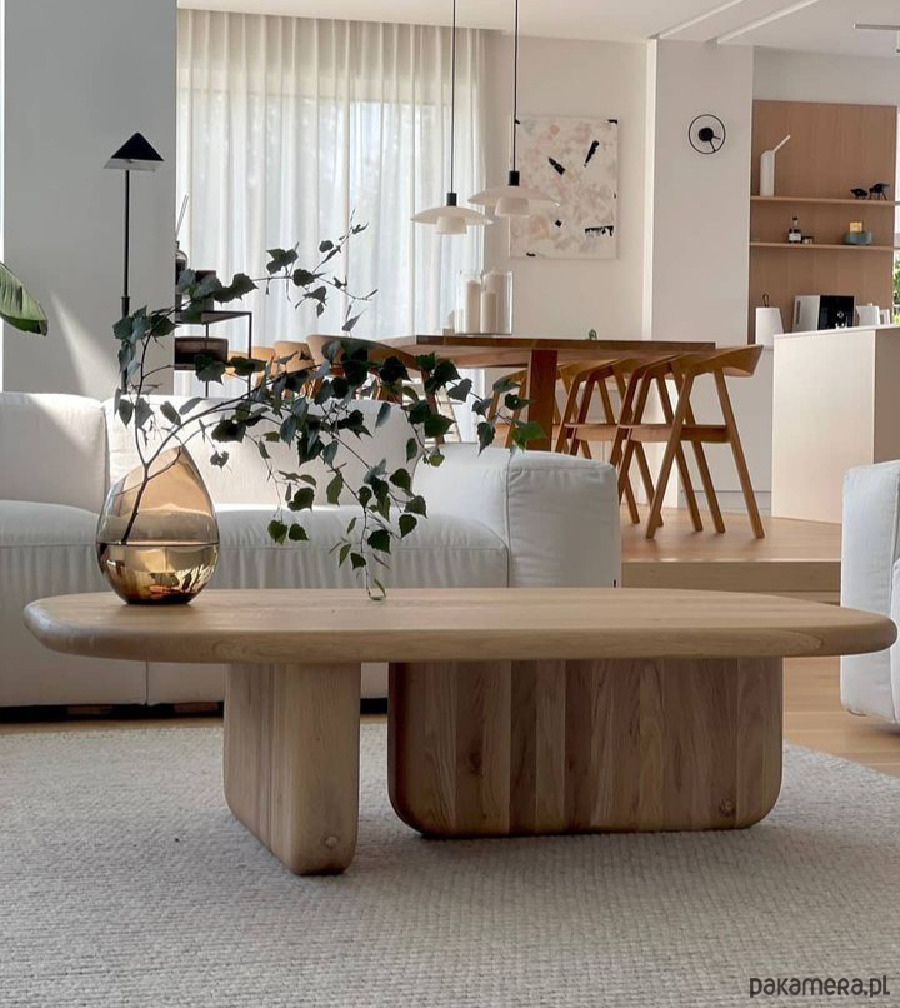 Stolik kawowy Ikigai (HomeAddict) to czyste rzemiosło i praca rąk. Wykonany został z litego dębu (nie ma tu okleiny, paździerzu), a więc cechuje go solidność i masywność. Jego organiczny kształt i pieczołowicie wyrzeźbiona forma idealnie współgrają z minimalistycznym wnętrzem. Pięknie również podkreśli charakter japandi, boho i klimat wnętrz w duchu naturalnym i eko. Stół Ikigai tworzymy w dwóch wersjach kolorystycznych : naturalny dąb i dąb barwiony na czarno.