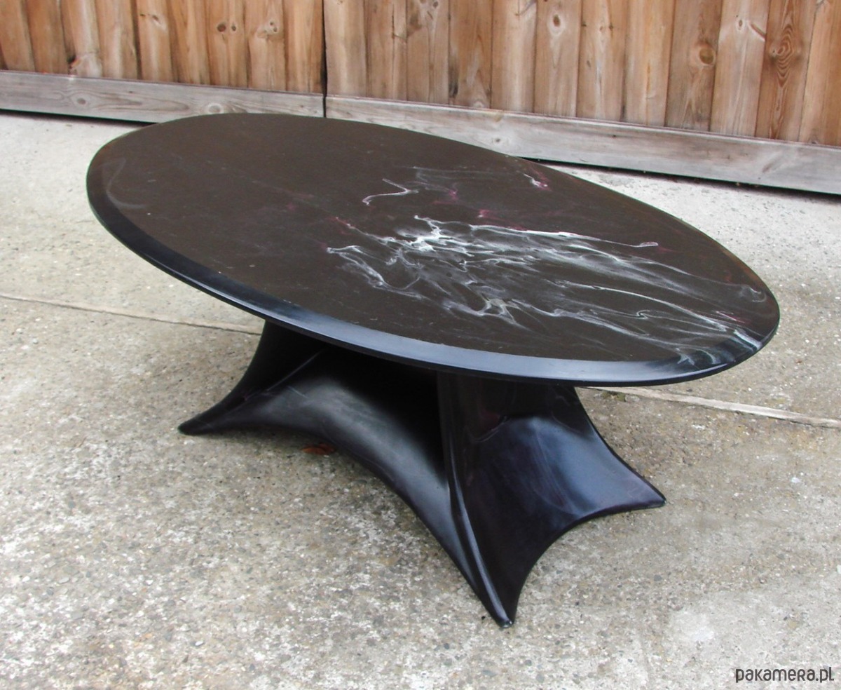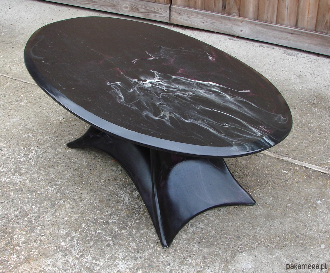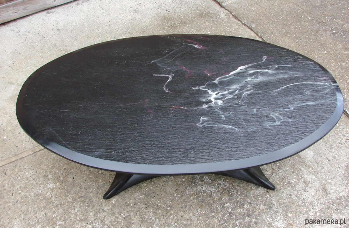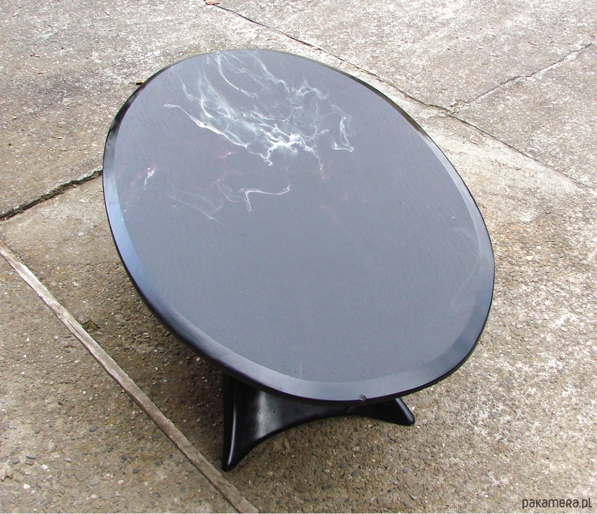 Stół kawowy, lata 70. Został wykonany z konglomeratu imitującego marmur.
