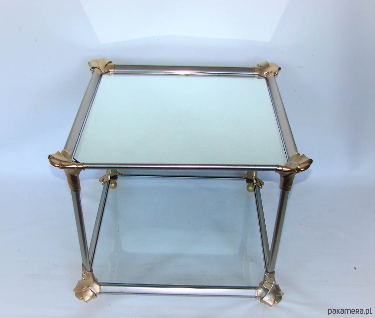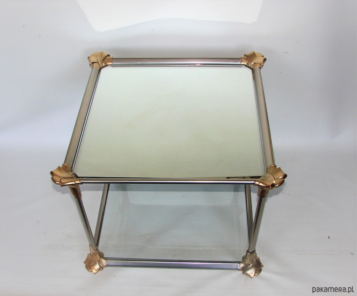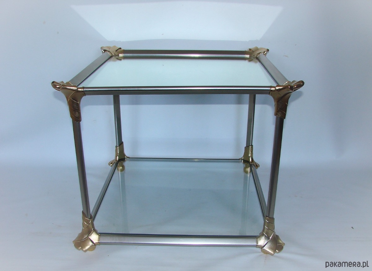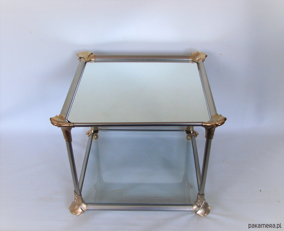 Oryginalny stolik kawowy z lat 70., wykonany z aluminium oraz szkła.