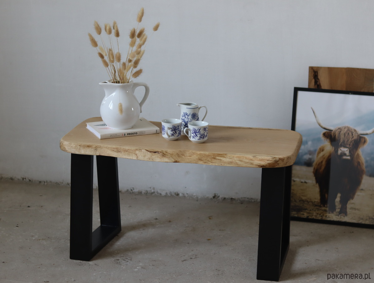 Piękny , naturalny stolik kawowy w stylu loft .Wykonany ręcznie z kawałka dębowego monolitu .Stolik cudownie prezentuje się we wnętrzu .