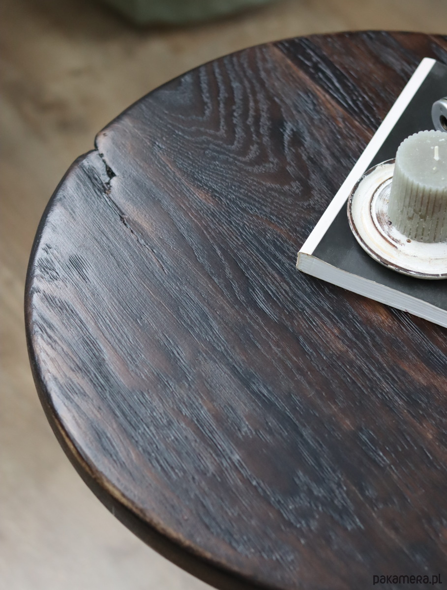 Prezentujemy wyjątkowy stolik kawowy, który łączy w sobie surowość natury z industrialnym stylem. Blat został wykonany z litego dębu, poddanego procesowi opalania, co wydobyło z drewna niesamowitą głębię koloru i podkreśliło jego naturalne usłojenie. Całość została zabezpieczona wysokiej jakości lakierem satynowym, który nadaje eleganckie wykończenie i ułatwia pielęgnację.