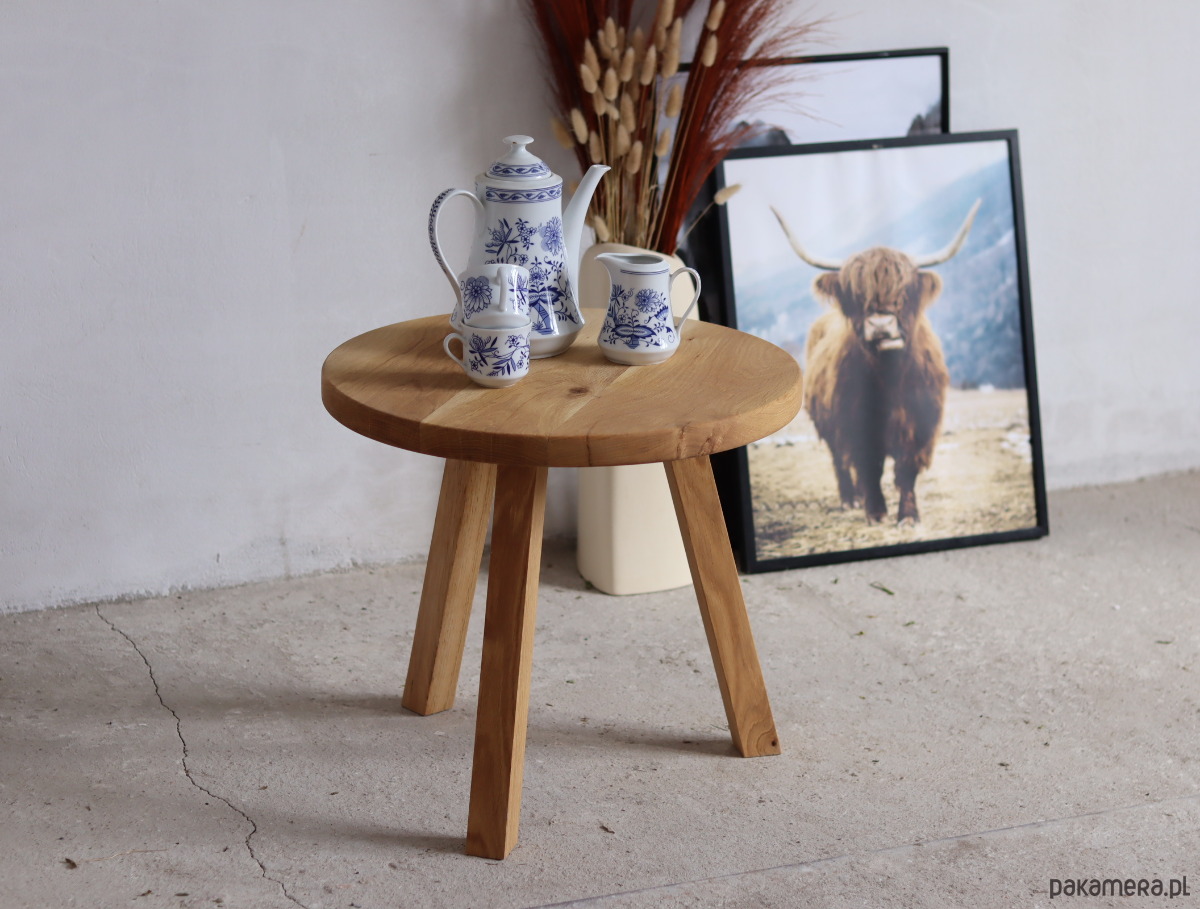 Stolik kawowy wykonany z drewna dębu. Jego usłojenie zapewnia mu unikatowość. Nogi również drewniane , całość olejowana.