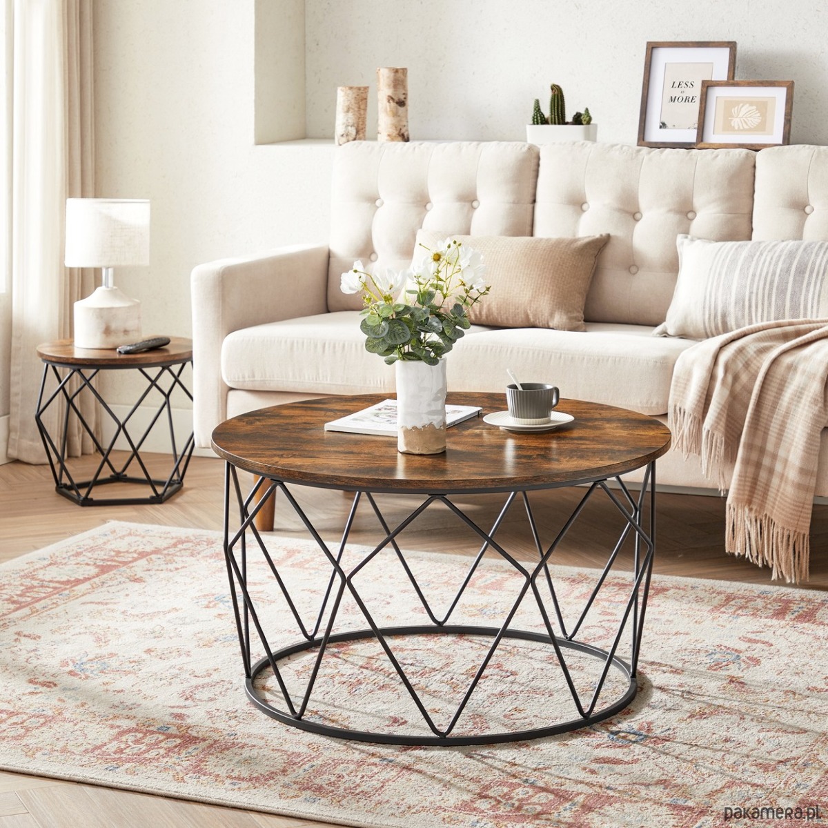 Ta okrągła ława to praktyczny i stylowy dodatek, który odmieni oblicze każdego pomieszczenia. Solidny stolik wykonany został z materiałów wysokiej jakości, blat z płyty laminowanej, a stelaż z metalu.