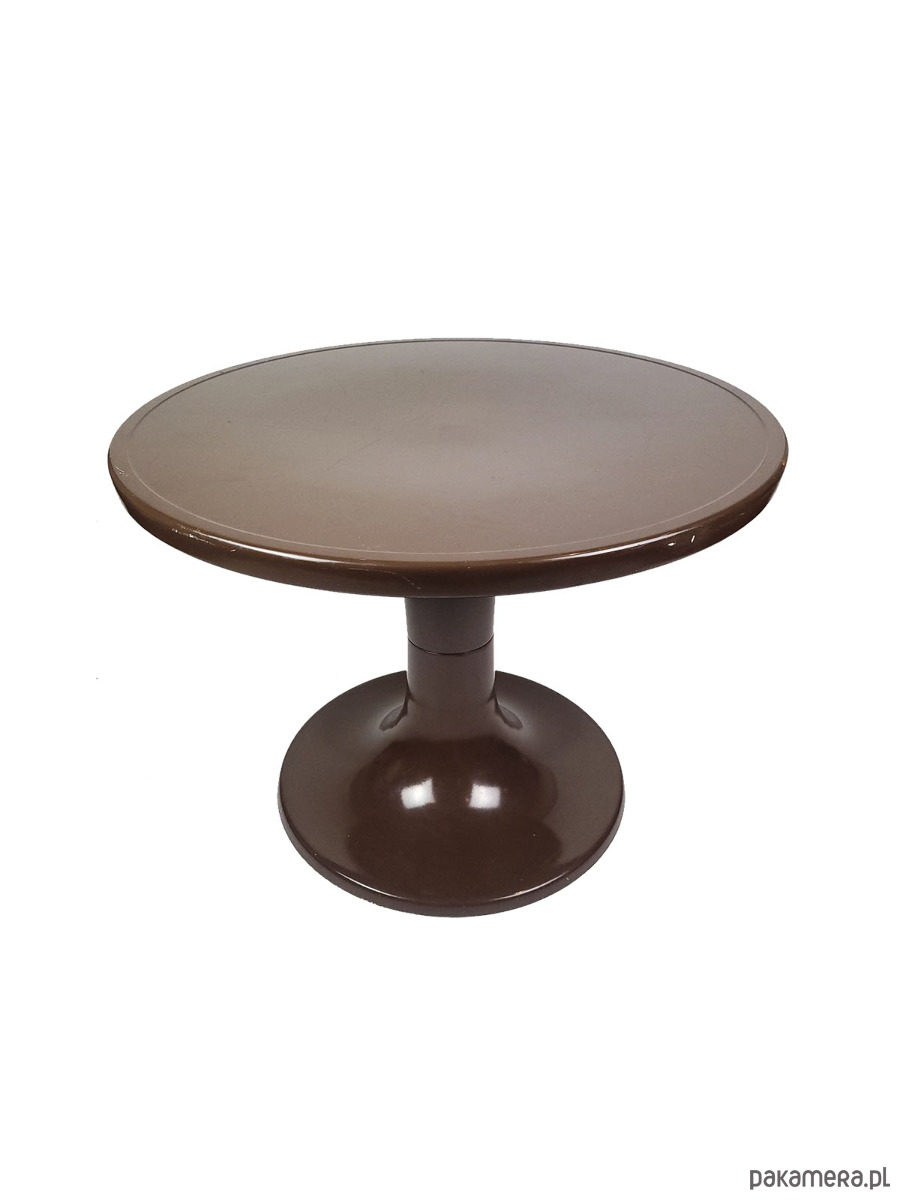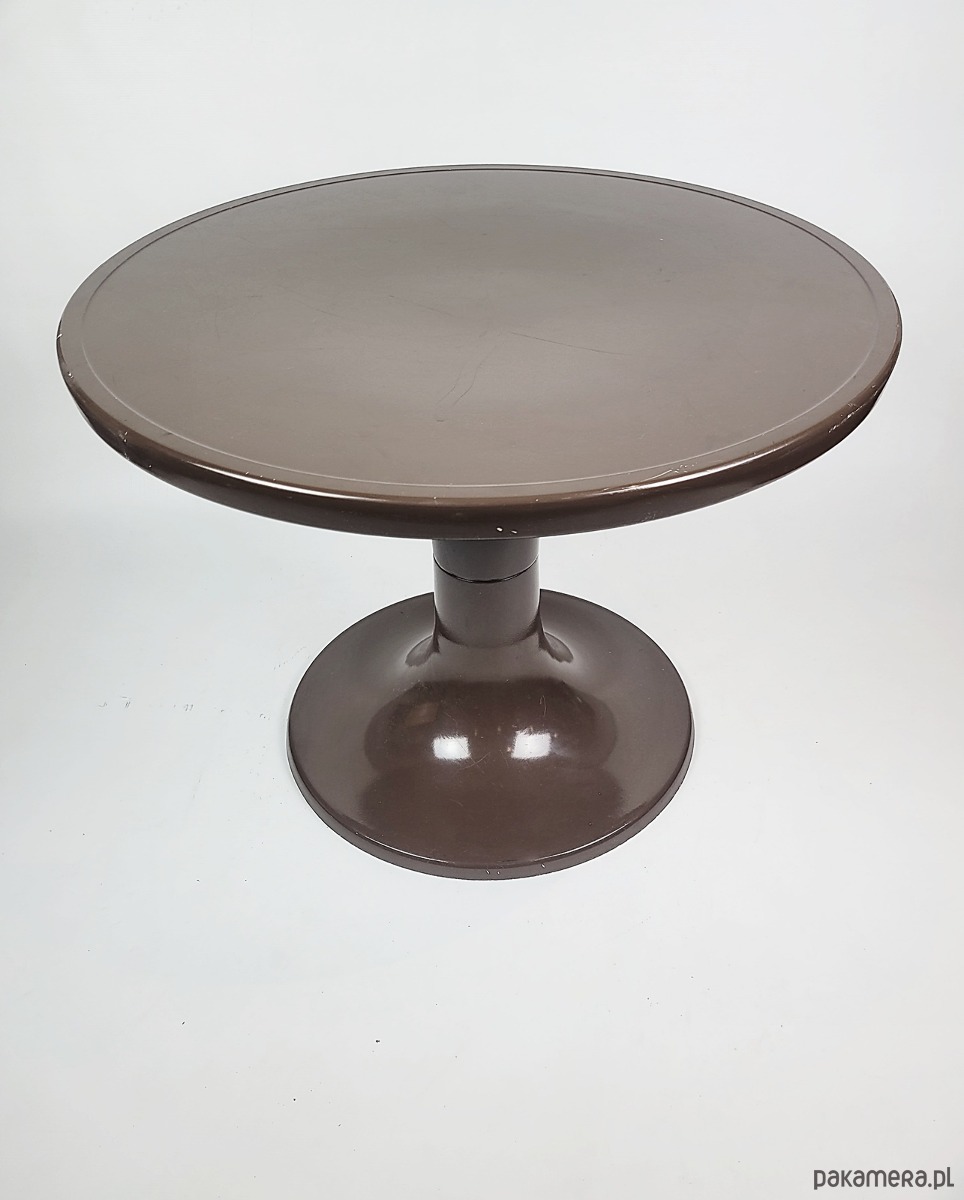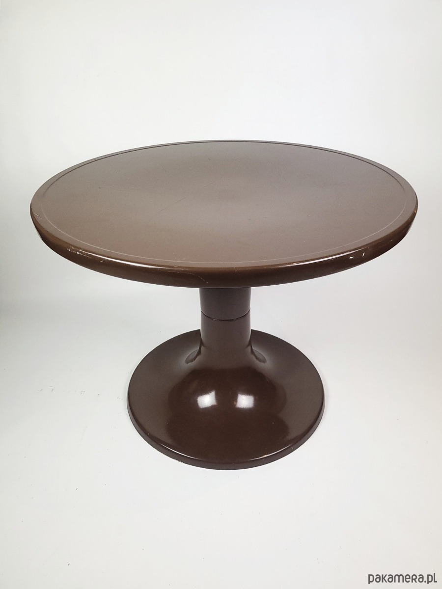 Ten wyjątkowy stolik projektu Ernsta Moeckla to ikona designu w stylu Space Age, inspirowana kultowymi projektami z lat 70. XX wieku. Charakteryzuje się płynną, organiczną linią o formie tulipana oraz głębokim, czekoladowym kolorem z eleganckim wykończeniem o wysokim połysku. Wykonany z trwałego tworzywa, łączy w sobie futurystyczną estetykę retro z praktyczną funkcjonalnością, doskonale sprawdzając się jako rzeźbiarski akcent w salonie, sypialni lub nowoczesnym biurze. To idealny wybór dla miłośników nurtu Mid-Century Modern, którzy szukają mebla o unikalnym charakterze i ponadczasowej formie. Stolik posiada delikatne ubytki w lakierze widoczne na zdjęciach.