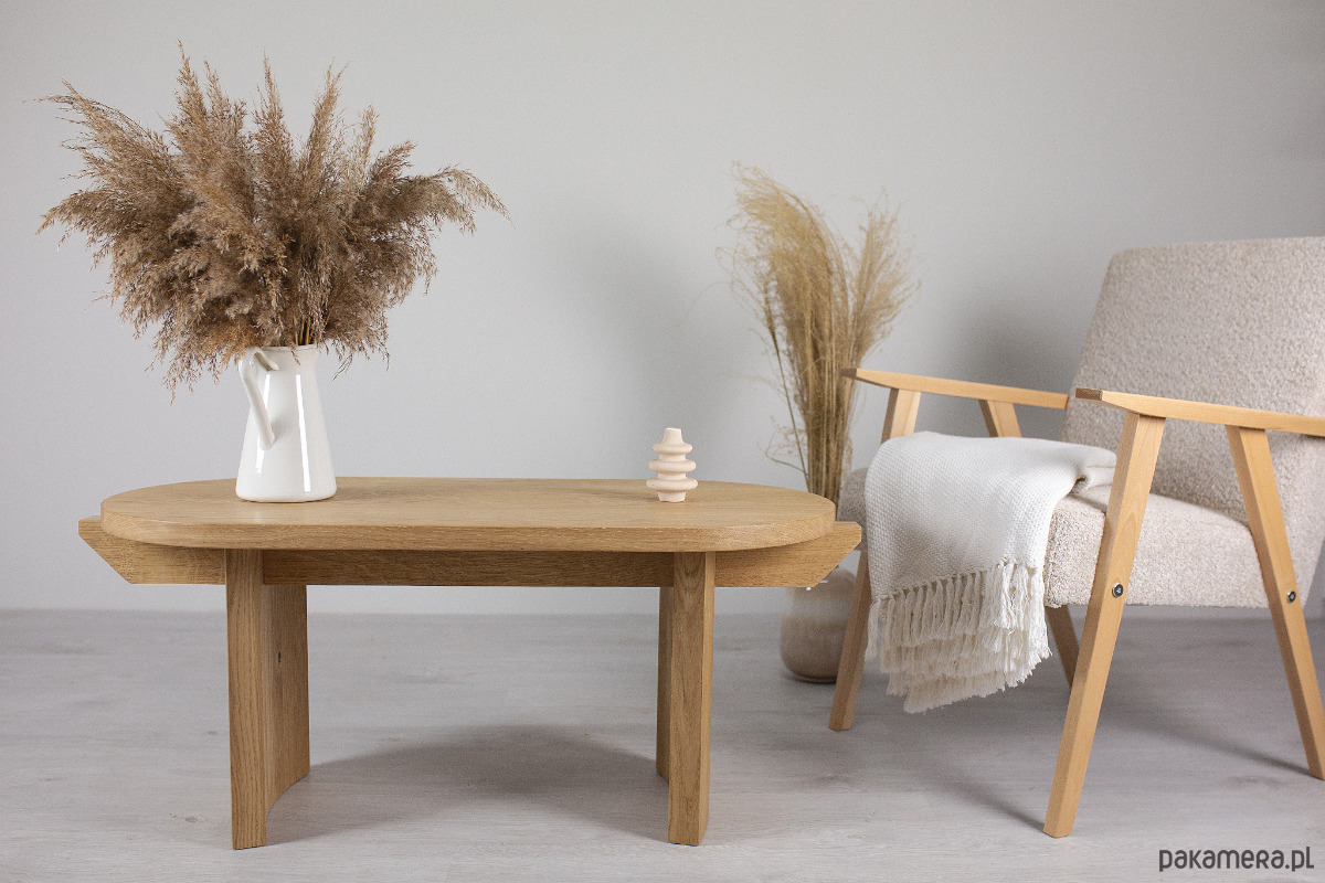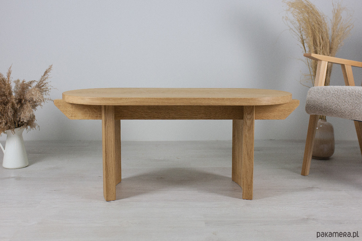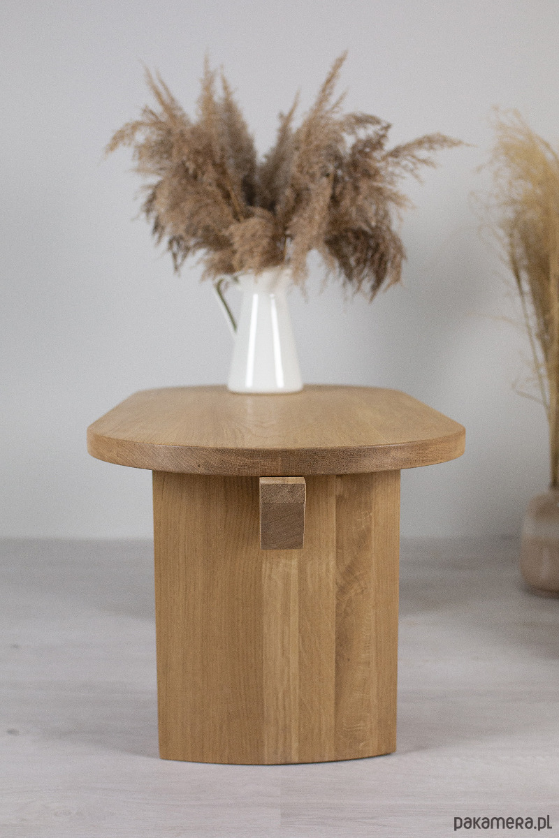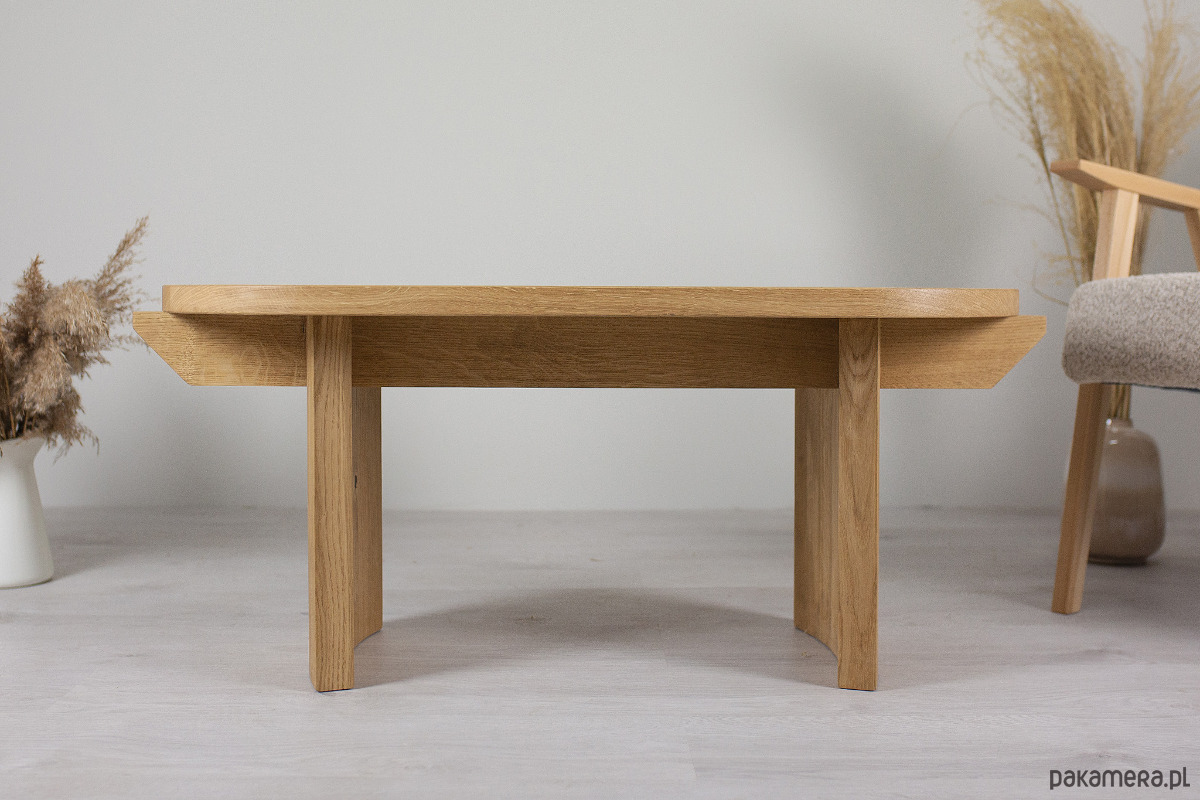 Stolik kawowy wykonany w całości z litego drewna dębowego. Zabezpieczony certyfikowanym olejo-woskiem wysokiej jakości.