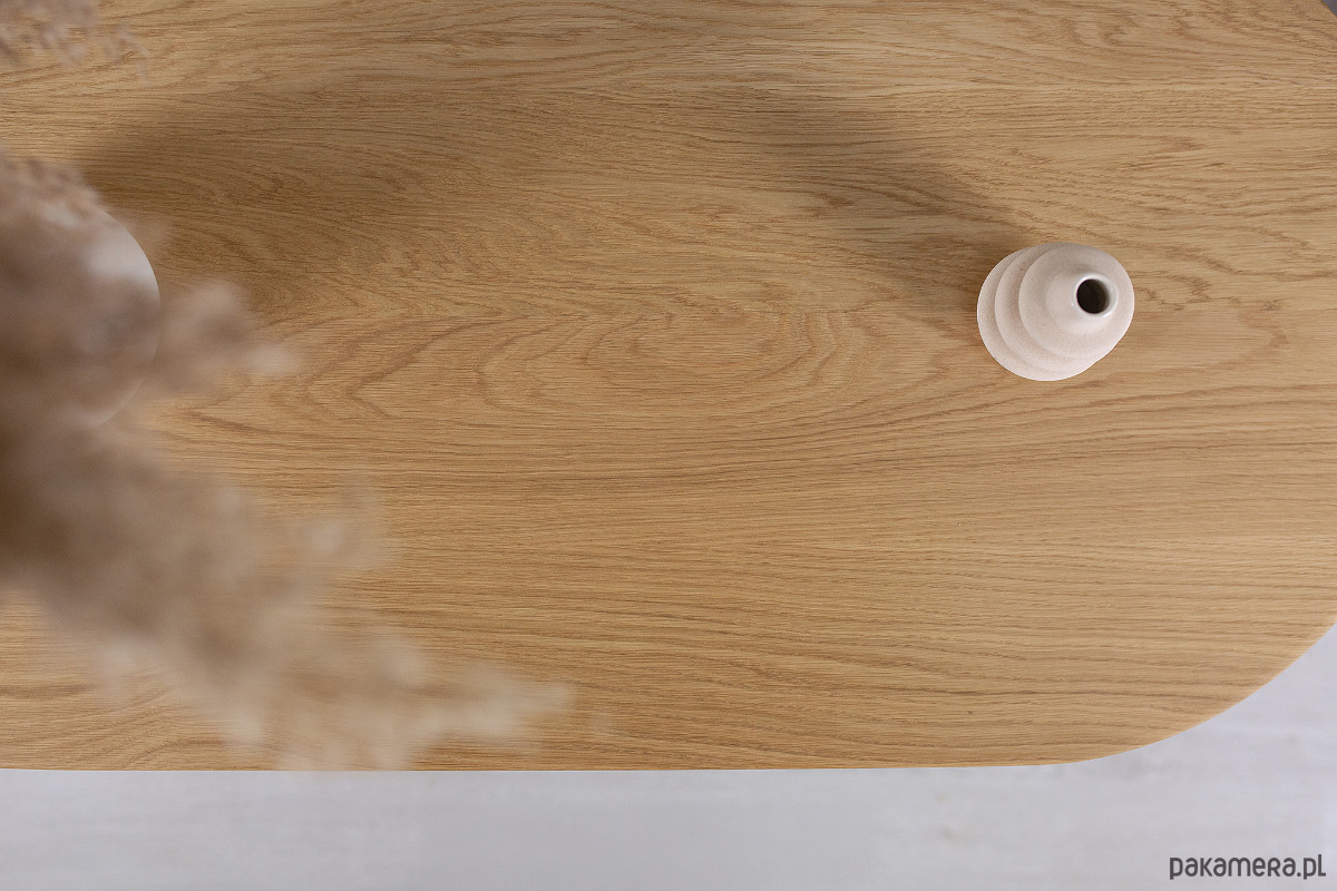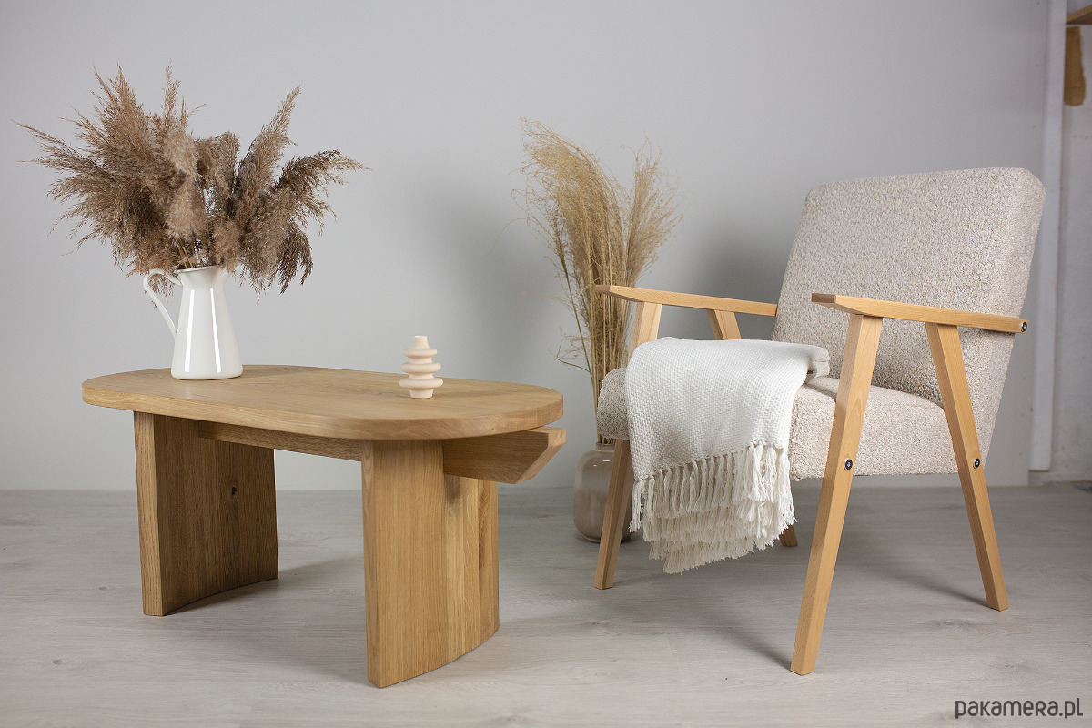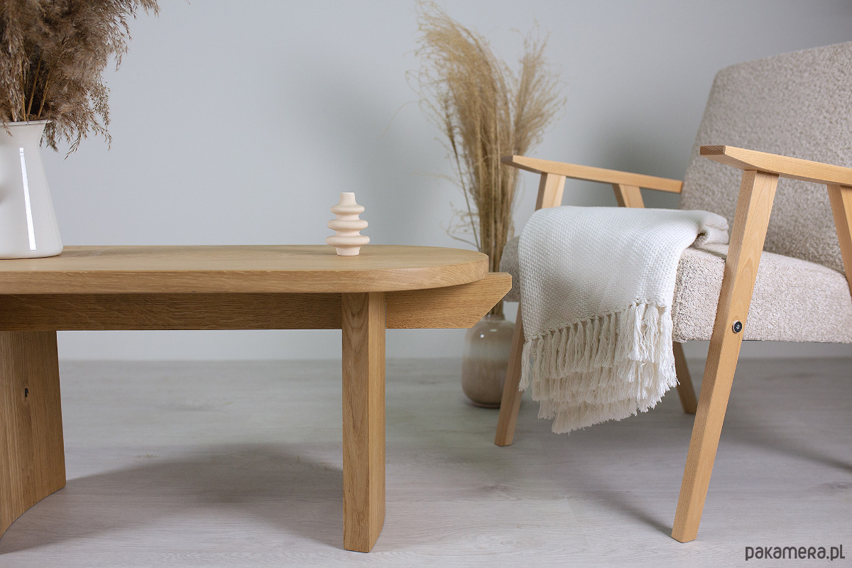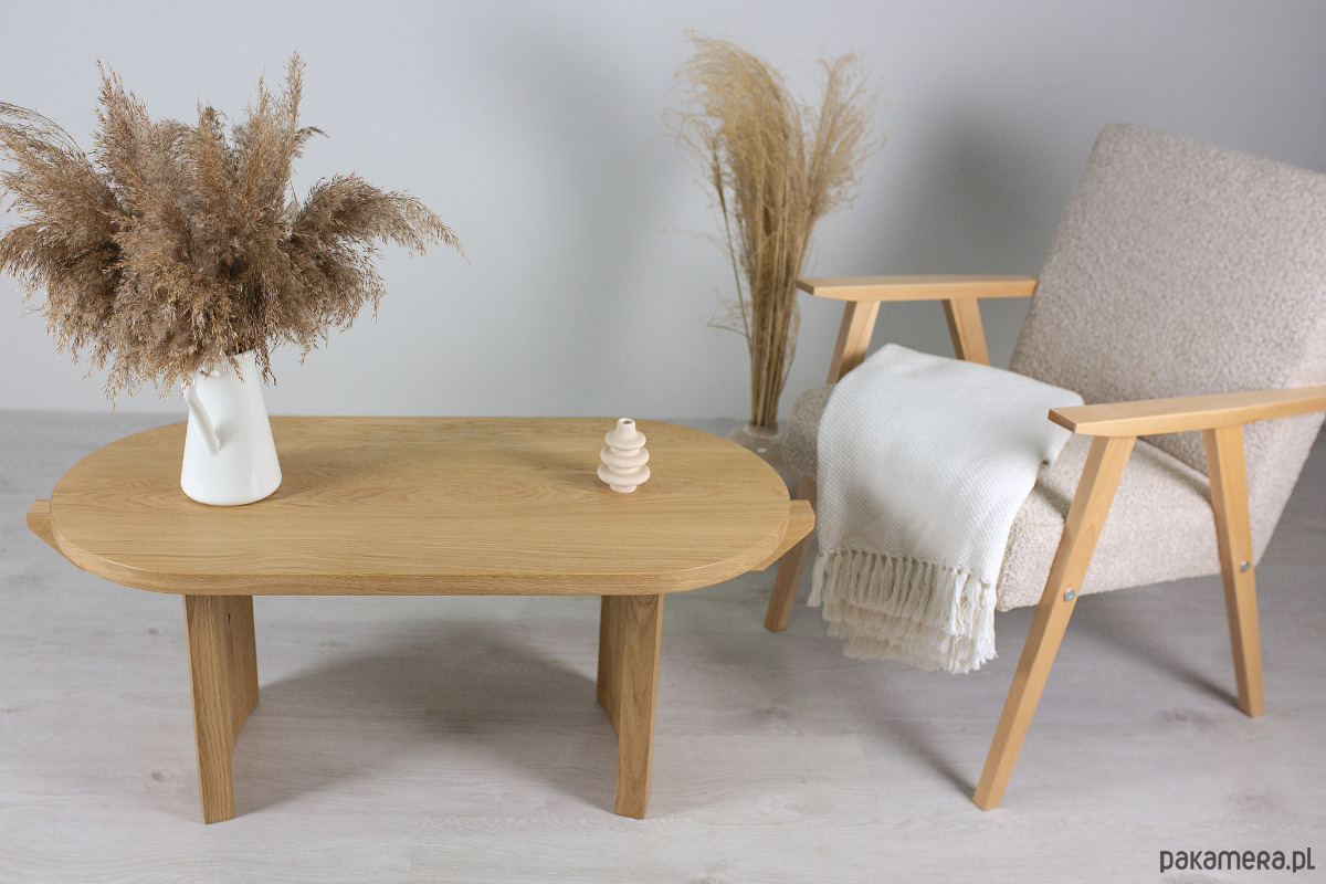Stolik kawowy wykonany w całości z litego drewna dębowego. Zabezpieczony certyfikowanym olejo-woskiem wysokiej jakości.