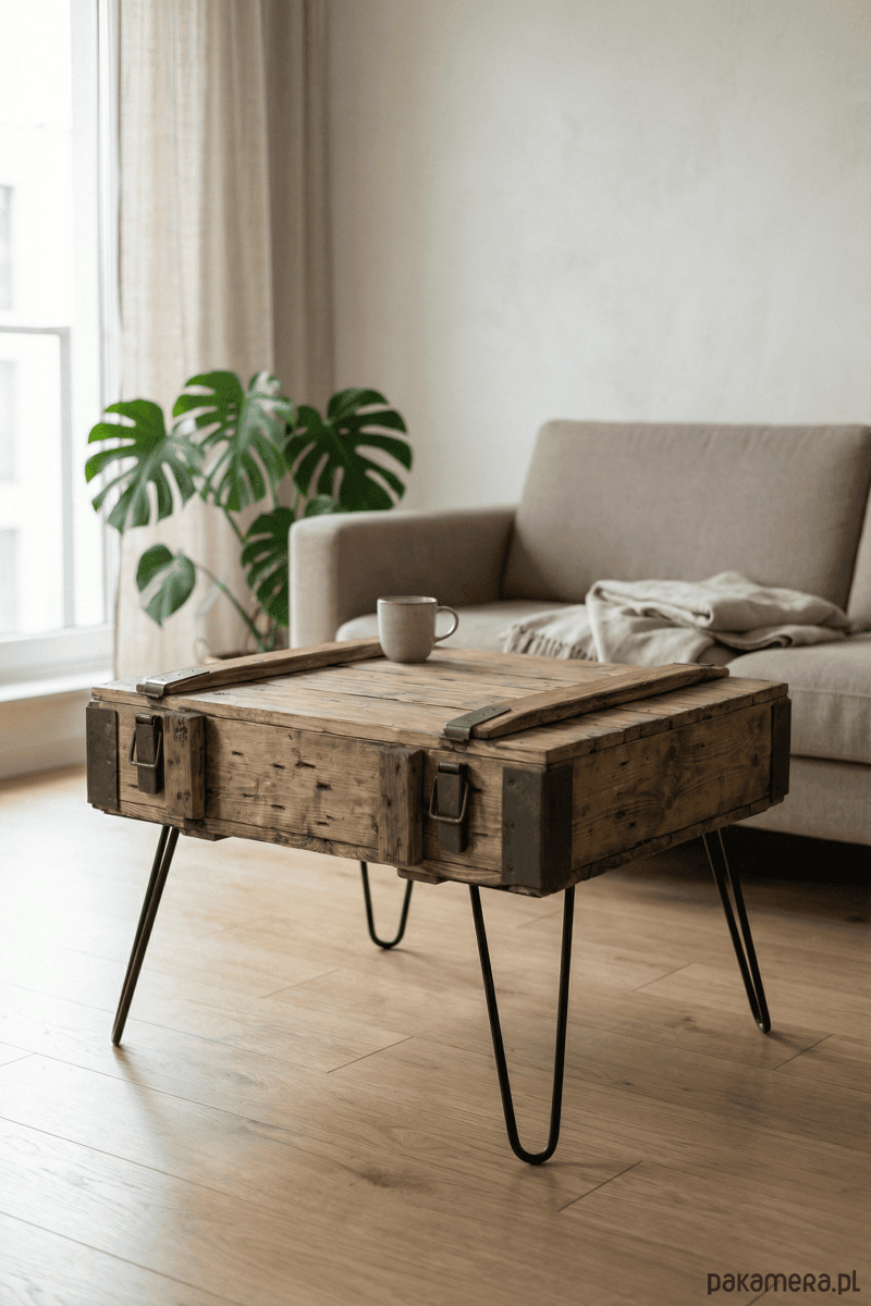 Stolik kawowy retro, vintage skrzynia wojskowa