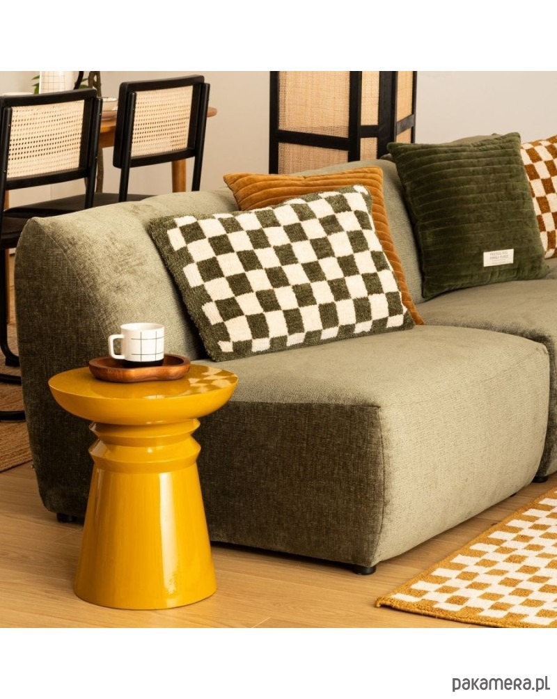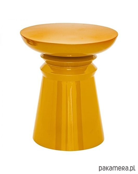Metalowy stolik pomocniczy w kolorze żółtym. Lakierowany na wysoki połysk. Idealny jako stolik boczny przy sofie.