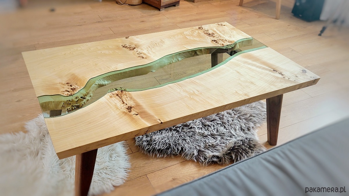 Hartowane szkło docięte specjalnie pod kształt blatu stworzonego przez naturę.