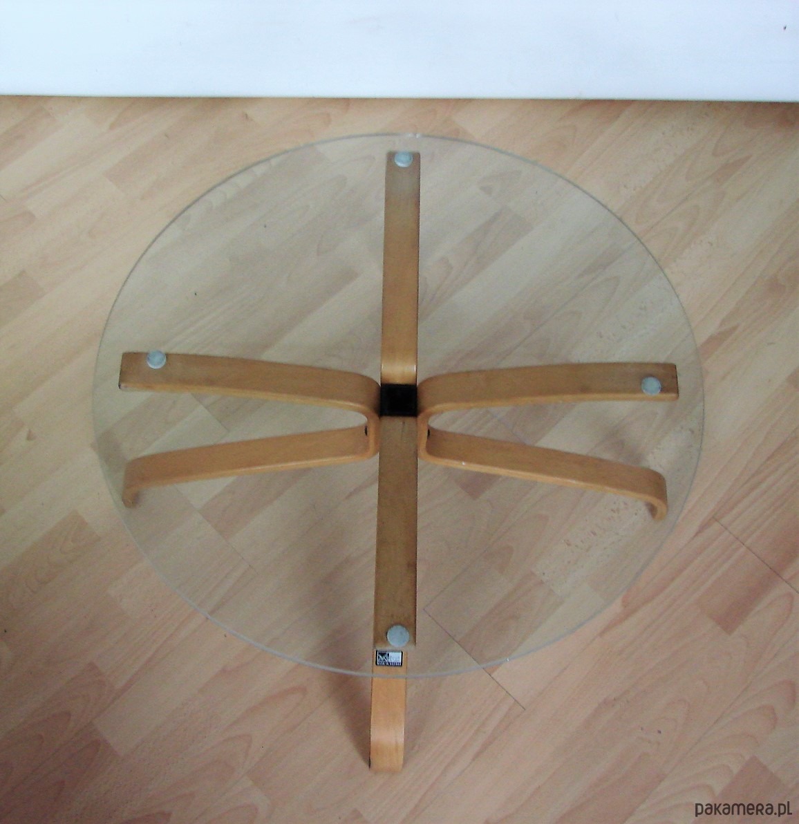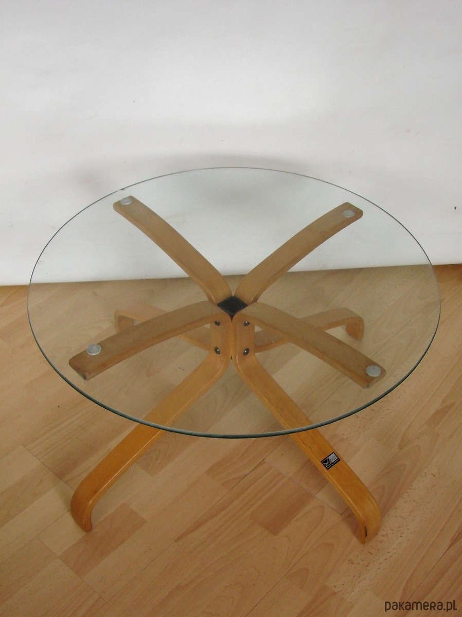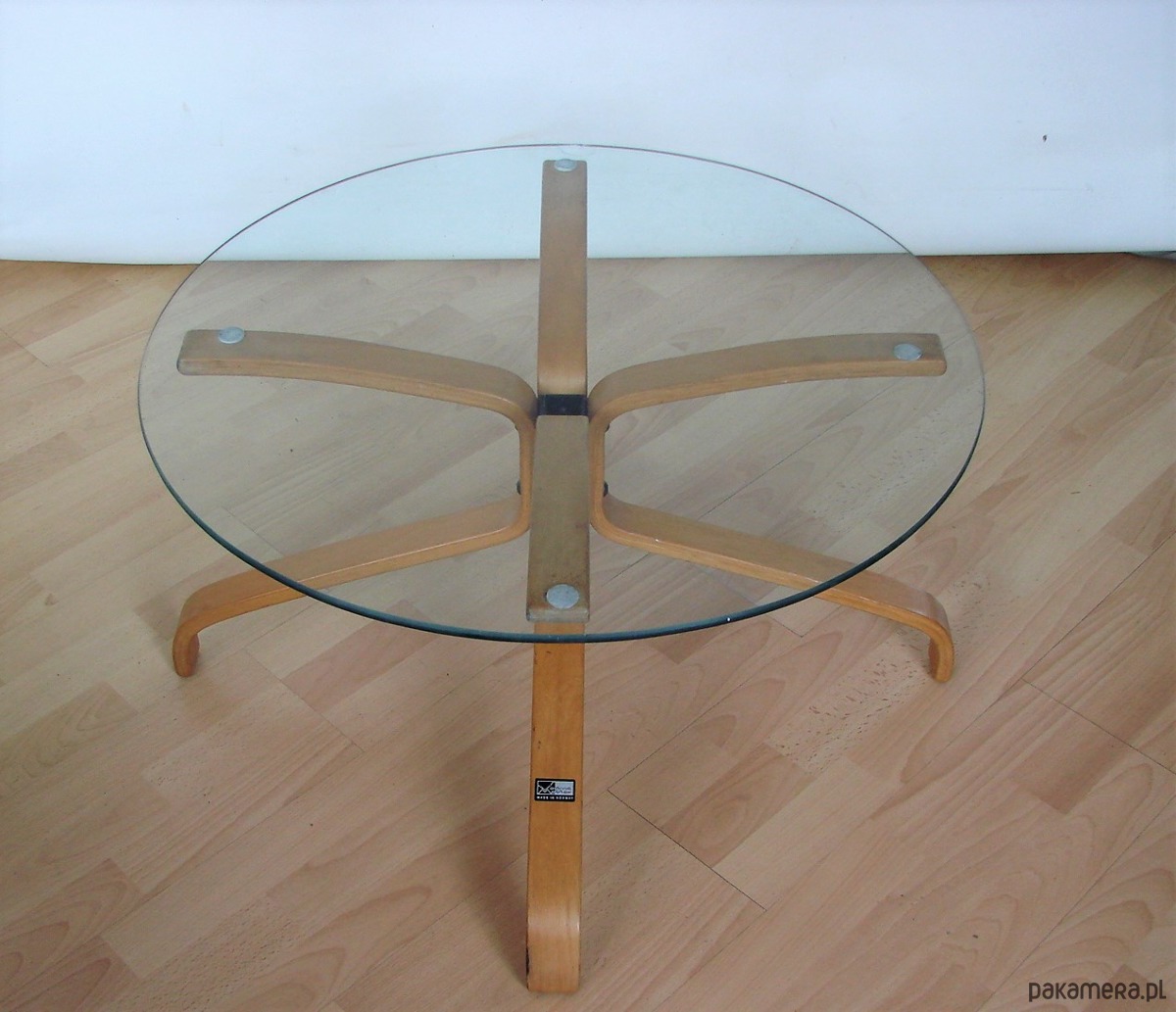 Stolik kawowy Vatne Mobler, Norwegia lata 70. Został wykonany z drewna i szkła.