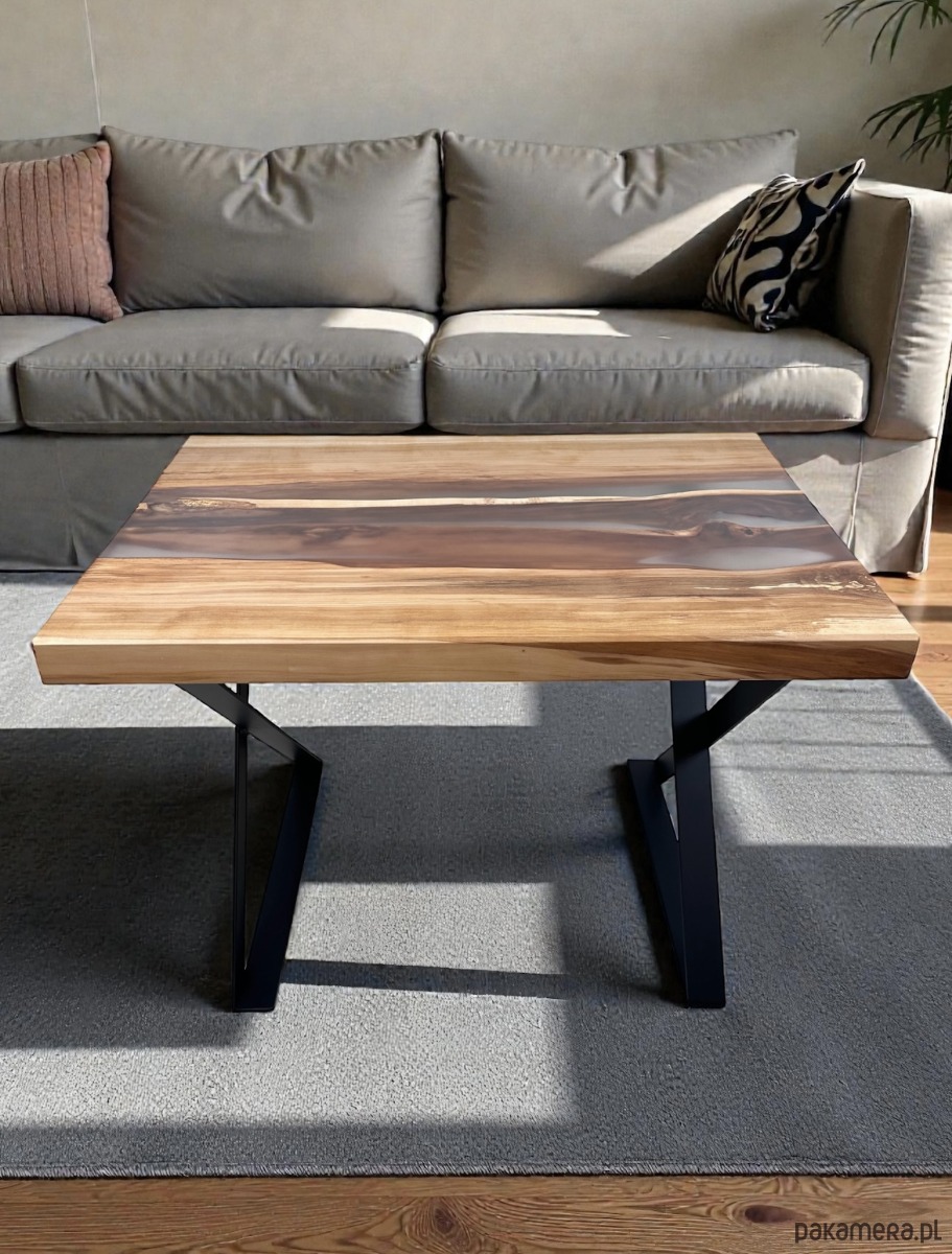Stolik kawowy z drewna i żywicy epoksydowej