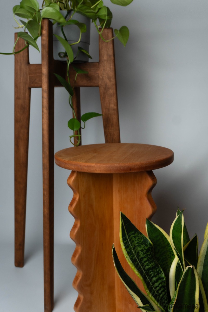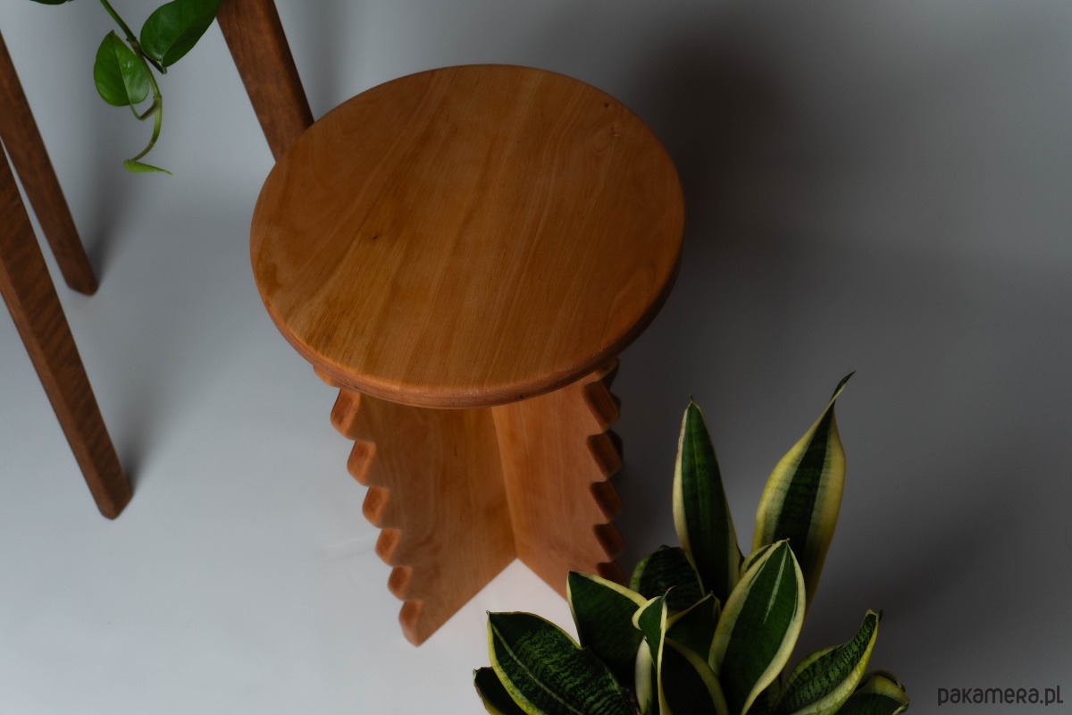 Ręcznie wykonany stołek z litego drewna olchowego to połączenie trwałości, stabilności i estetyki.