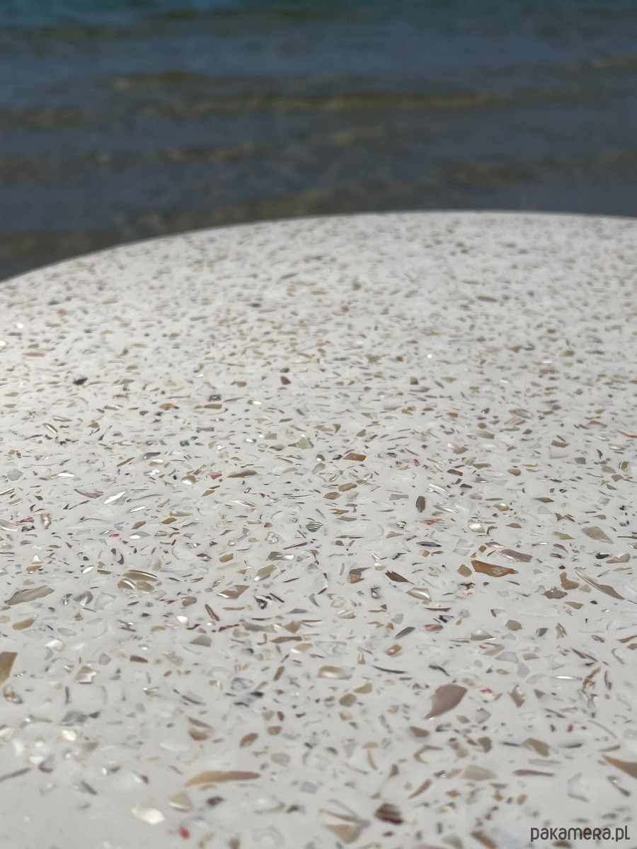 Blat wykonany ręcznie z wysokiej jakości gipsu polimerowego wzmocnionego żywicą akrylową. Powierzchnia blatu została podwójnie zaimpregnowana. Jest odporny na wodę, ogień i promieniowanie UV.