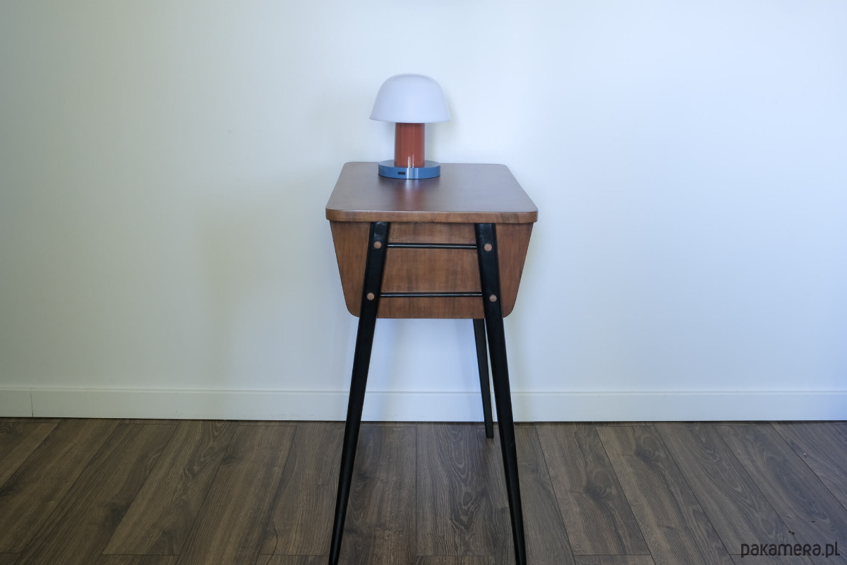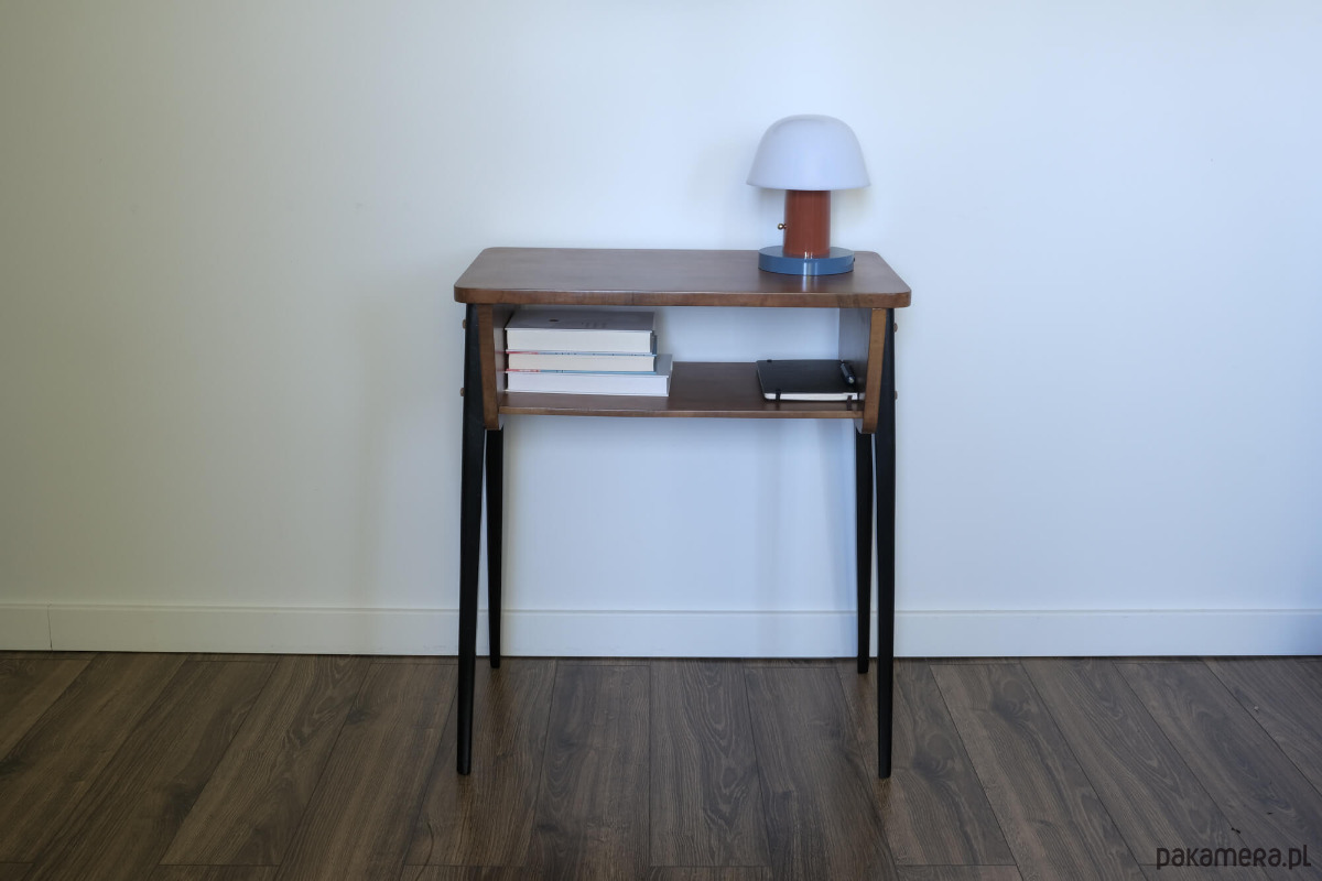 Stolik pod radio typ 600-203A wyprodukowany przez Przedsiębiorstwo Obróbki Drzewa w Koronowie.