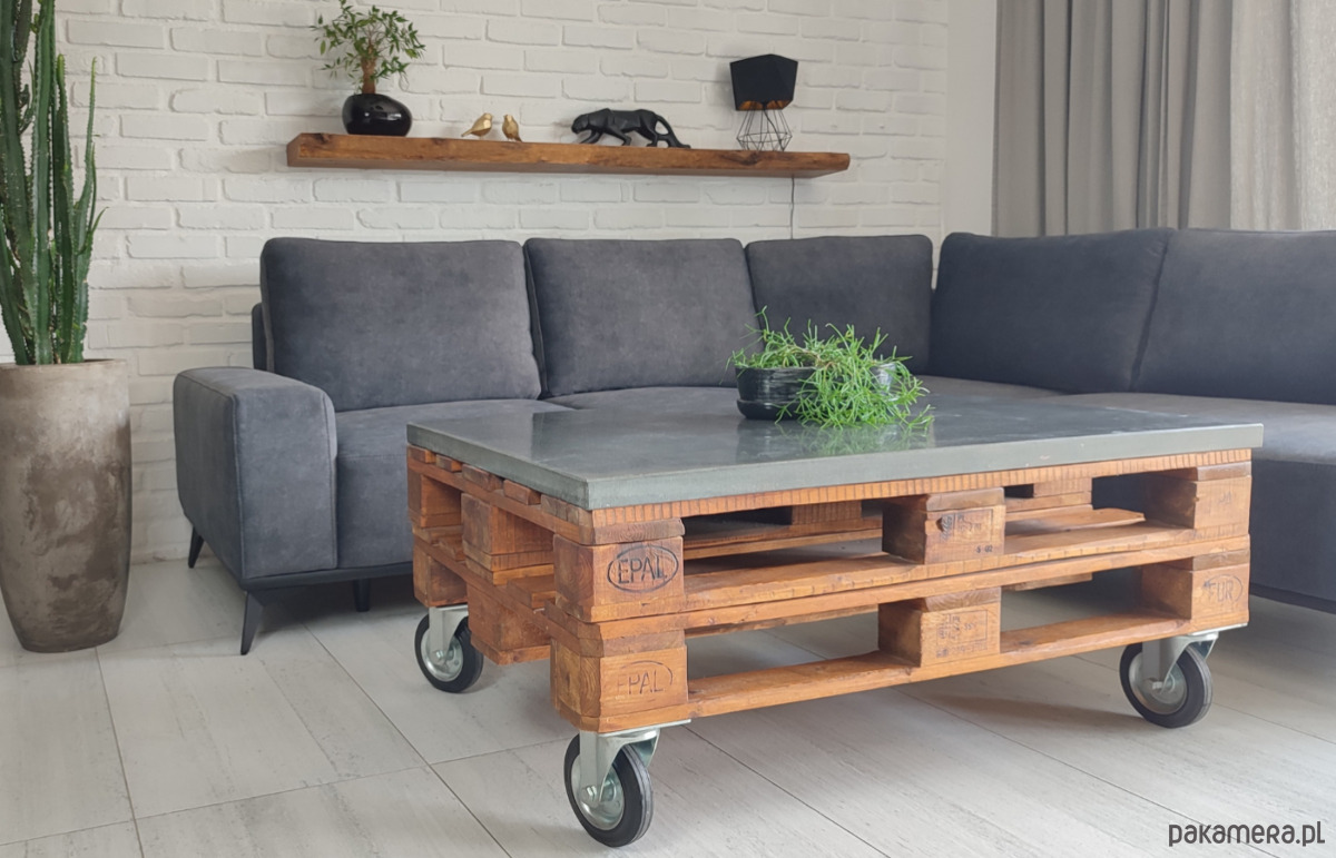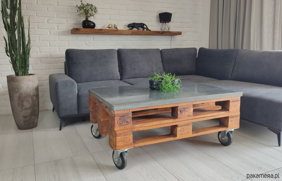 Odkryj unikalny stolik betonowy, osadzony na drewnianej europalecie z metalowymi kółkami. Wytrzymały, stylowy i łatwy do przemieszczania, stanowi doskonały wybór dla każdego wnętrza. Ręcznie wykonany stolik, łączy nowoczesny design z funkcjonalnością i trwałością. Idealne do loftowych i nowoczesnych wnętrz.