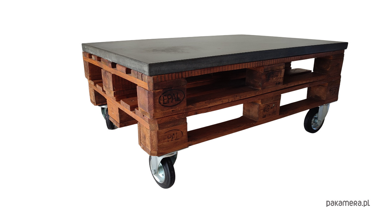 drewno (Europalety), blat wykonany jest z wysokowytrzymałościowego betonu, który jest wodoodporny. Nie wymaga impregnacji , ani innych powłok zabezpieczających.