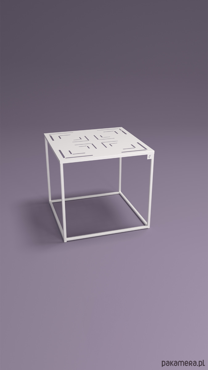 Stoliki w całości wykonane są ze stali. Stoliki są spawane ręcznie na autorskim oprzyrządowaniu, a górne blaty są wycinany z blachy laserowo w celu maksymalnej dokładności i dopasowania. Kształtownik ma wymiary 15mmx15mm.