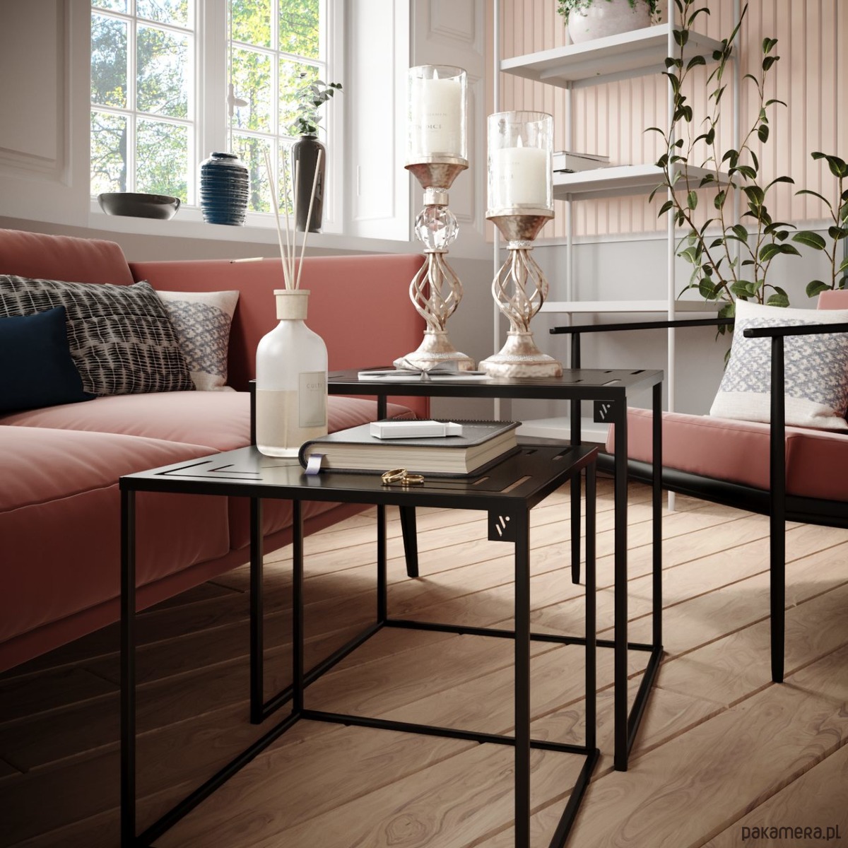 Standardowo stoliki są dostępne w kolorze czarnym (RAL 9005) oraz białym (RAL 9003). Stoliki są malowane proszkowo, we własnej malarni z dbałością o każdy detal.