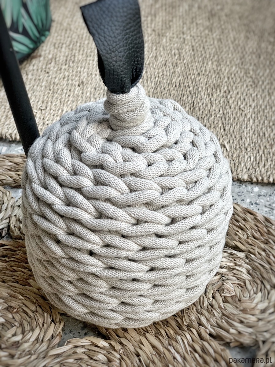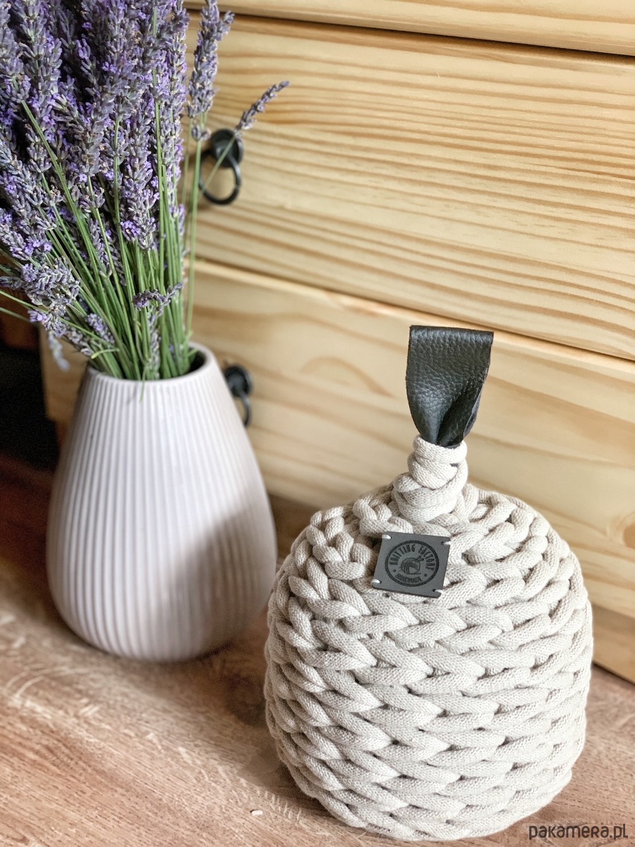 Stoper do drzwi wyposażono w wygodny skórzany uchwyt. Całość jest wykonana z sznura bawełnianego– wyjątkowo wytrzymałego i estetycznego materiału.