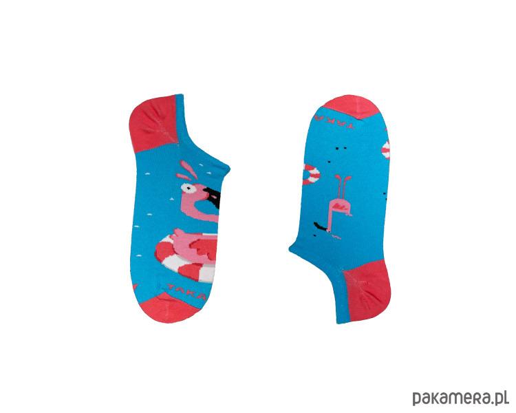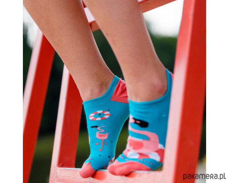 Wesołe skarpetki „Flamingowa 6” to kwintesencja lata, którą możesz mieć na swoich stopach. Flamingi to jedne z najpiękniejszych i najbardziej zachwycających ptaków. Nie musisz już jechać na Arubę żeby je zobaczyć, możesz je mieć na swoich stopach i cieszyć oczy wszystkich spotkanych na swojej drodze ludzi. Rozweselą każdą stylizację i poprawią nastrój nawet największym smutasom. Skarpetki we flamingi dostępne są w rozmiarach dla kobiet i dla mężczyzn, a także dla dzieci – pomyślcie tylko jak wesoło może wyglądać cała rodzinka w tych skarpetkach!