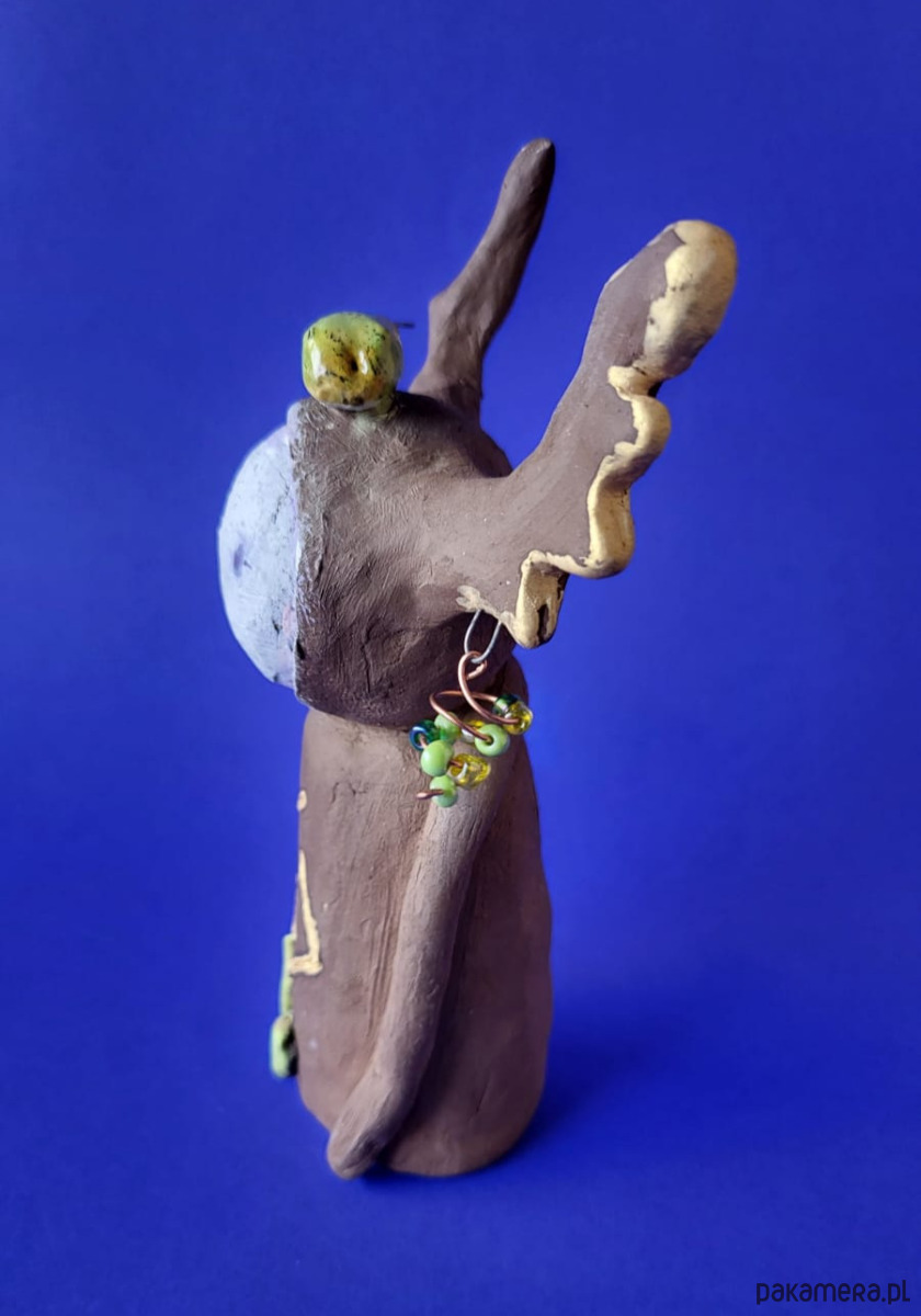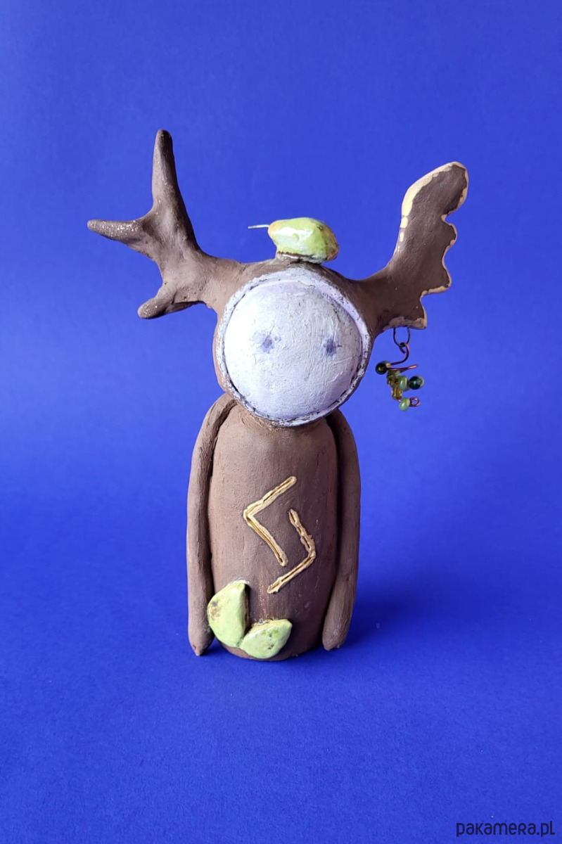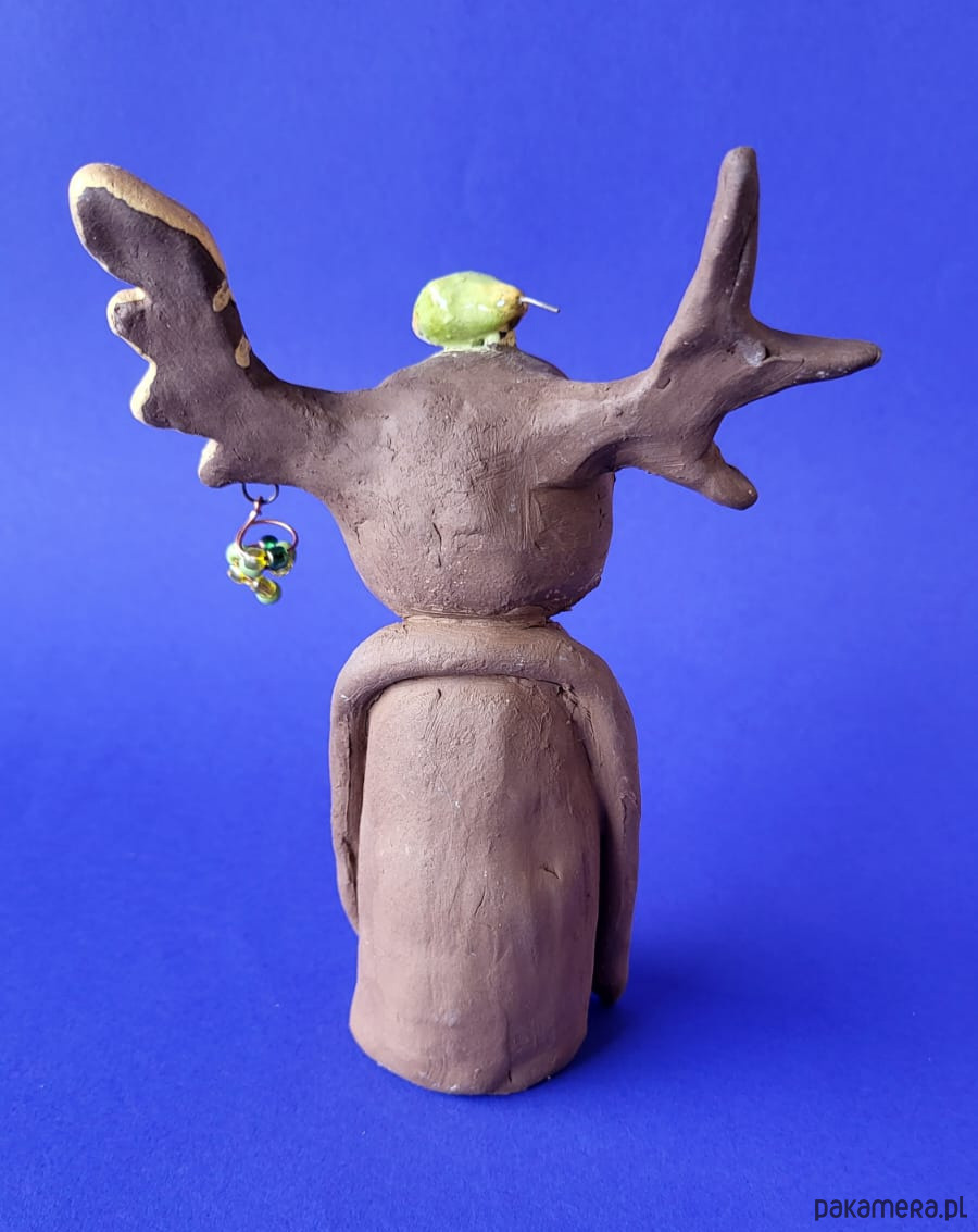 Unikalna, ręcznie robiona figurka symboliczna z porożem, liściem i gruszką, inspirowana leśnymi duchami i energią słońca. Na korpusie wyryta została runa Jeran – znak obfitości, urodzaju i bogactwa.