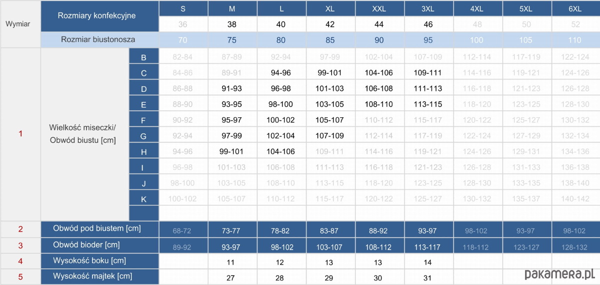 Produkowany w rozmiarach: 38DEFGH 40CDEFGH 42CDEFG 44CDE 46CDE