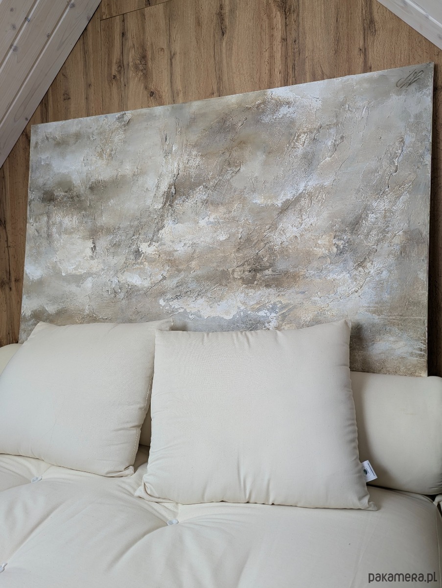 Unikatowy, ręcznie malowany obraz w jasnych, ziemistych tonacjach, z wyrazistą, naturalną strukturą, idealny do wnętrz w stylu boho, modern, japandi czy minimalistycznych. Praca powstała na wysokiej jakości bawełnianym płótnie, zachwyca subtelną grą światła, bogatą fakturą i trójwymiarowym efektem. Zastosowane techniki warstwowe tworzą unikalną powierzchnię, przyciągającą wzrok i harmonijnie współgrającą z naturalnymi materiałami oraz roślinami.