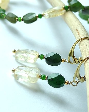 Delikatny naszyjnik z oliwinem, cytrynem i pirytem