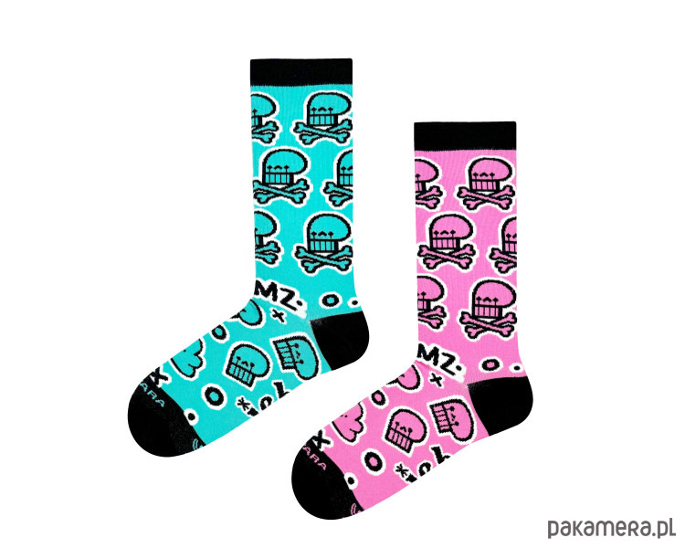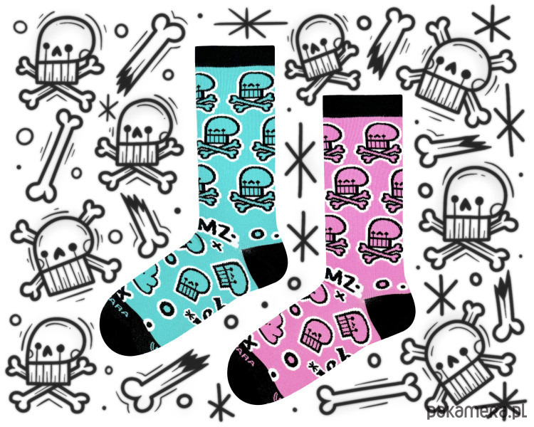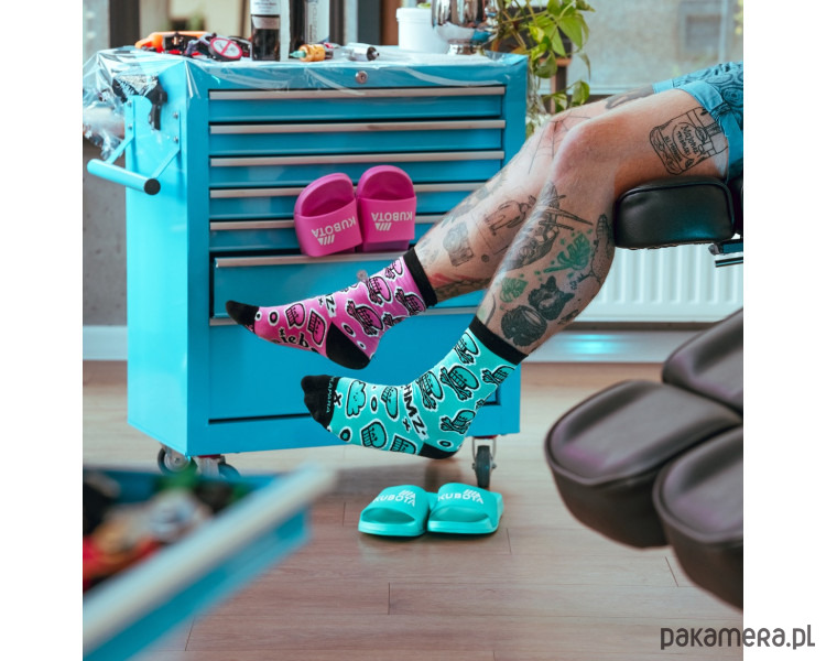 Kolorowe skarpetki BOHOCZASZKI, zaprojektowane przez Adama Bohomaza, to idealne połączenie sztuki tatuażu z modą. Skarpetki zostały stworzone w limitowanej edycji 100 sztuk we współpracy z łódzkim studiem tatuażu NIEBO. Miętowo-różowe kolory, które dominują w projekcie, są charakterystyczne dla stylu studia, a czaszki na skarpetkach nadają im rockowego charakteru. Te skarpetki są nie tylko praktycznym dodatkiem do garderoby, ale także wyrazem osobowości i artystycznego smaku. Wzory czaszek są od dawna popularne w sztuce tatuażu, symbolizując zarówno śmiertelność, jak i odrodzenie, co czyni je idealnym wyborem dla osób ceniących głębsze znaczenia i odważne wzory. Dzięki wykonaniu w technologii 200 igieł, te bawełniane skarpetki są wyjątkowo trwałe i komfortowe, idealnie dopasowując się do stopy. Skarpetki BOHOCZASZKI to świetny sposób, aby dodać swojemu stylowi odrobinę drapieżności i wyjątkowości, a jednocześnie zachować elegancję i subtelność dzięki pastelowym odcieniom mięty i różu. Idealne na każdą okazję, nawet na spotkanie z teściową - niech wie, że masz charakter! Załóż je i poczuj się, jakbyś chodził po chmurach ubrany w tatuaże! Czaszki w tatuażach od wieków przyciągały uwagę swoim symbolicznym znaczeniem – często kojarzone z przemijaniem, mogą także symbolizować triumf nad przeciwnościami losu, co czyni je idealnym wzorem dla osób, które lubią wyzwania i nie boją się iść pod prąd. Zainwestuj w skarpetki BOHOCZASZKI i poczuj, jak te unikalne wzory i kolory dodają Ci pewności siebie i wyjątkowego stylu.