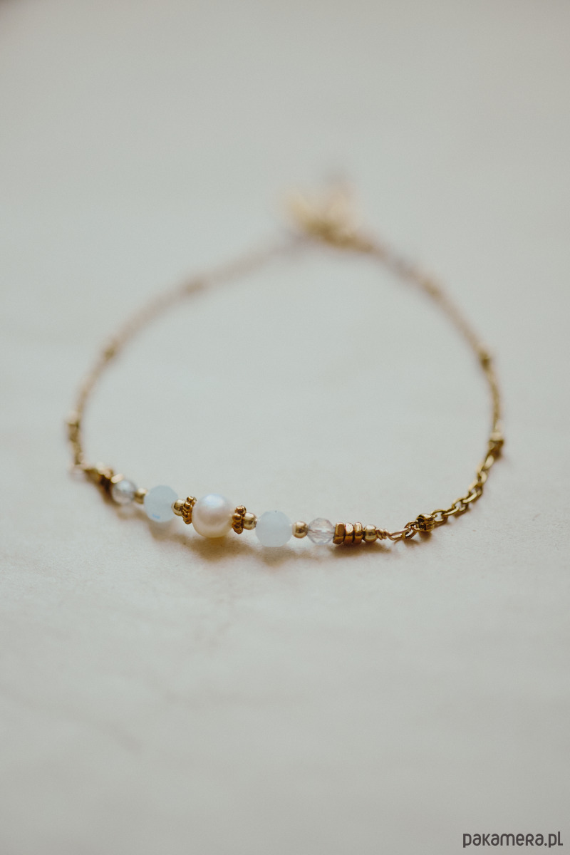 Styczeń to mroźne powietrze, obłoki pary z ust i śnieg. Taka jest też nowa bransoletka. Śnieżna kulka perły, bladobłękitny akwamaryn i skrzący się labradoryt. To wszystko w eleganckim, złotym wykończeniu. Pięknie leży na nadgarstku i wysyła do Twojej głowy myśli: "to będzie dobry dzień, bo mam siłę tak zadecydować", "jestem piękna i pewna siebie", "magia istnieje, a skrzący się śnieg niczym brokat jest na to dowodem". Nowe bransoletki miesiąca są delikatne i minimalistyczne. ⋆❆˚。₊⊹❅⋆ Zacznij nowy rok z dobrą energią rękodzieła.