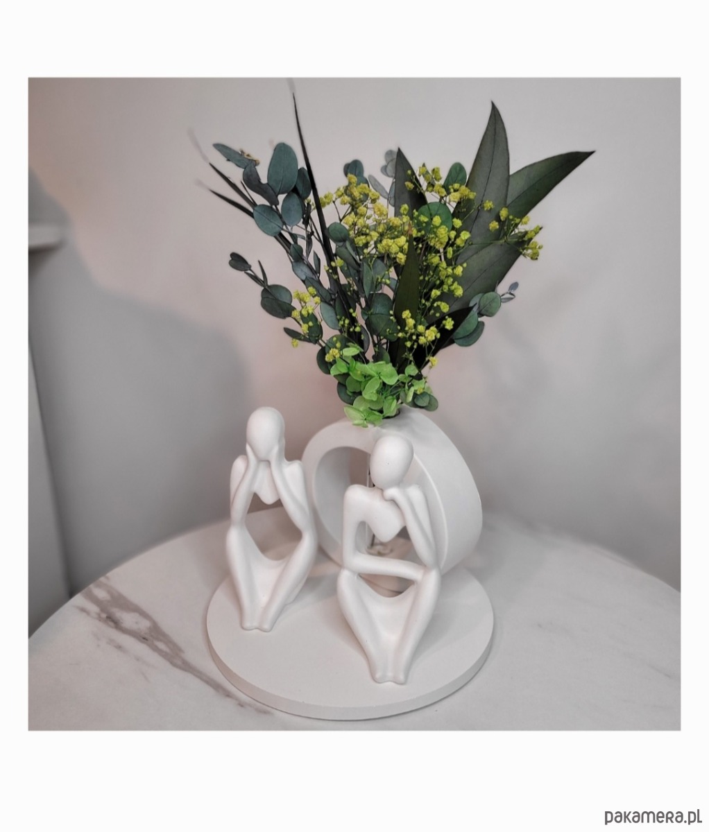 Śnieżnobiałe figurki w nowoczesnym, minimalistycznym stylu symbolizują harmonię i zadumę, a naturalna zieleń dodaje kompozycji życia i równowagi. Zestaw idealnie sprawdzi się w salonie, sypialni, gabinecie lub jako stylowy prezent.