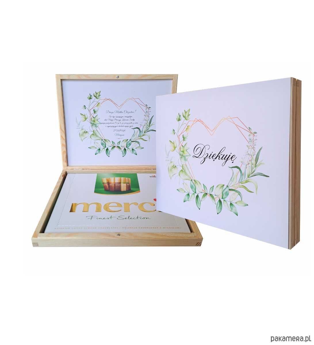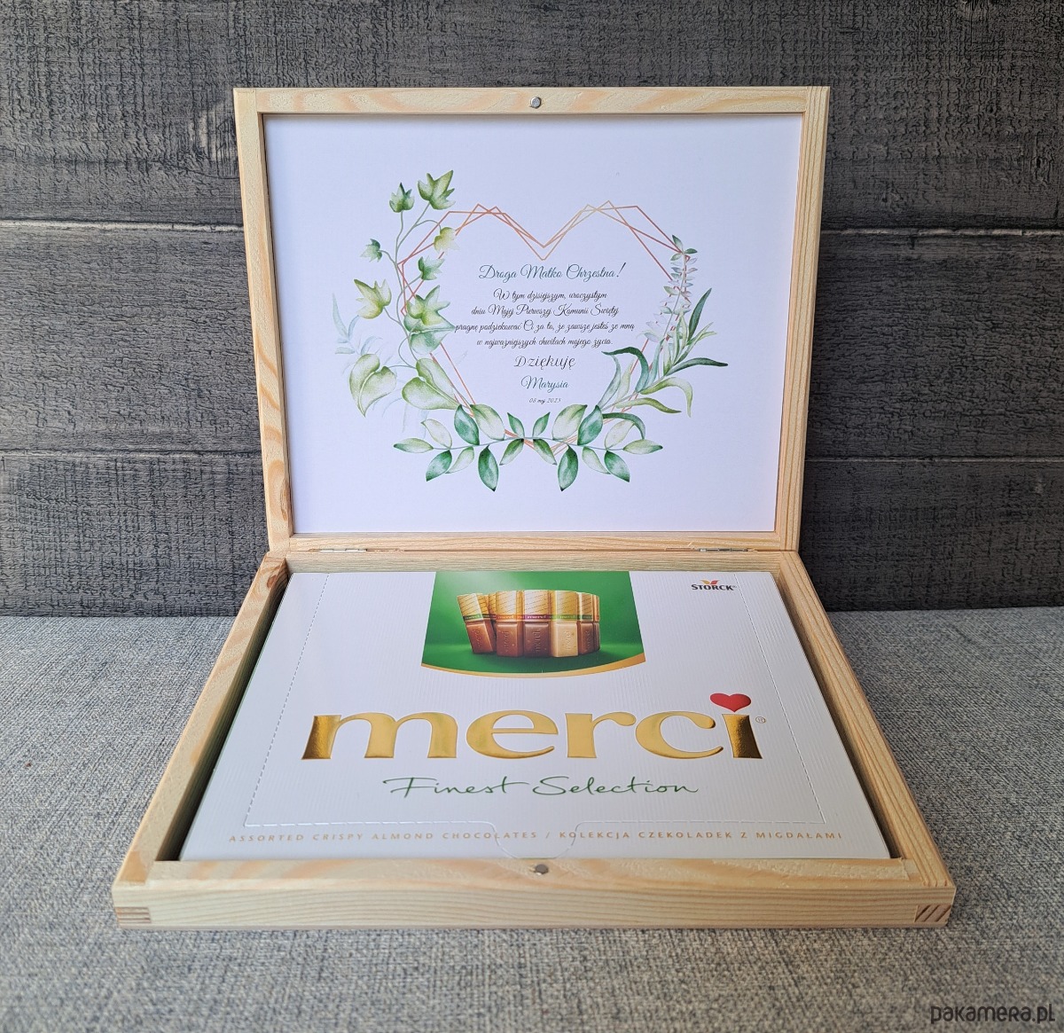 Idealnym wypełnieniem będą czekoladki "Merci", które można umieścić w środku pudełeczka bądź zdjęcia