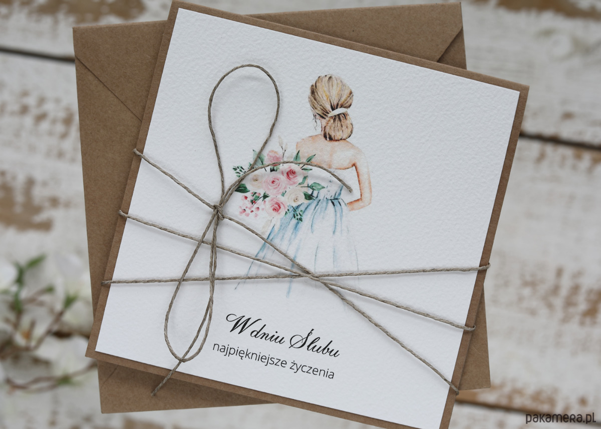 Wymiar 14x14 cm. Kartka wykonana na bazie papieru kraftowego z użyciem papieru bawełnianego z nadrukiem. Z gotowymi życzeniami jak na zdjęciu.