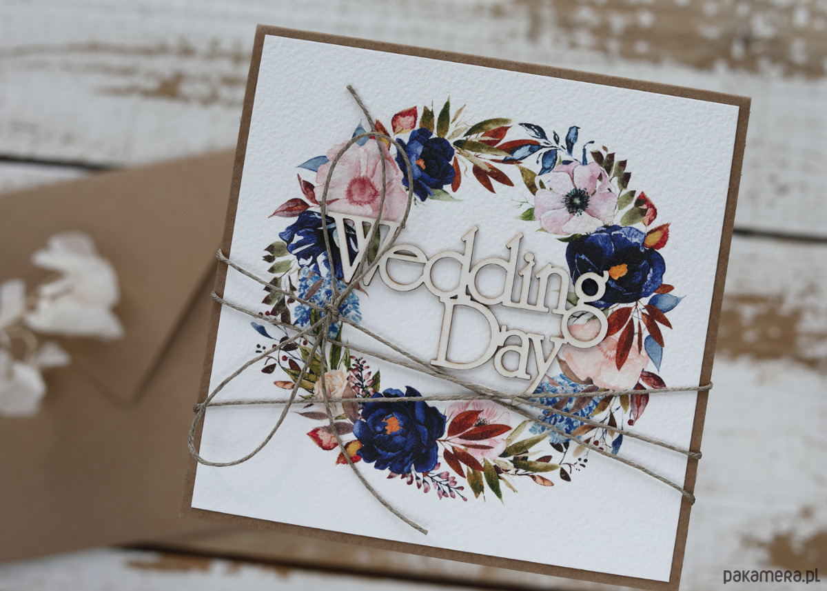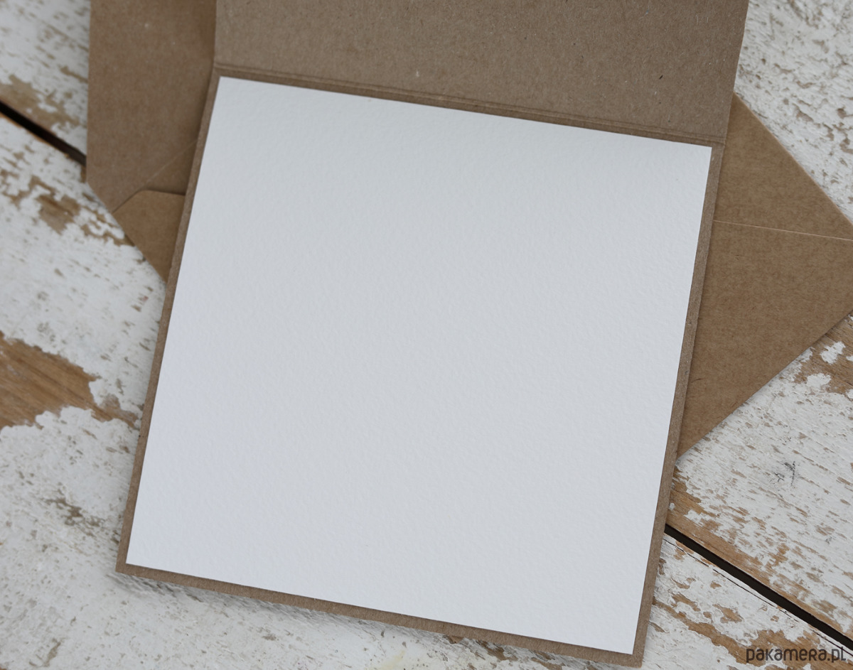 Wymiar 14x14 cm. Kartka wykonana na bazie papieru kraftowego z użyciem papieru bawełnianego oraz tekturkowego napisu. W środku kartka pusta gotowa do wypisania życzeń odręcznie. Personalizacja - nadruk życzeń za dopłatą.