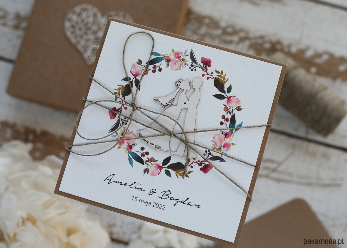Kartka o wymiarach 14x14 cm wykonana z papieru kraftowego, papieru bawełnianego oraz z najlepszej jakości tekturki. Personalizacja na przodzie kartki i w środku - proszę o podanie danych w UWAGACH do zamówienia -
