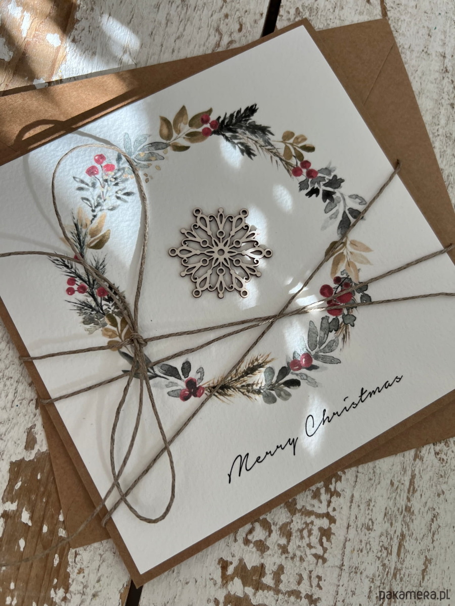 Stylowa ręcznie robiona kartka świąteczna Merry Christmas card