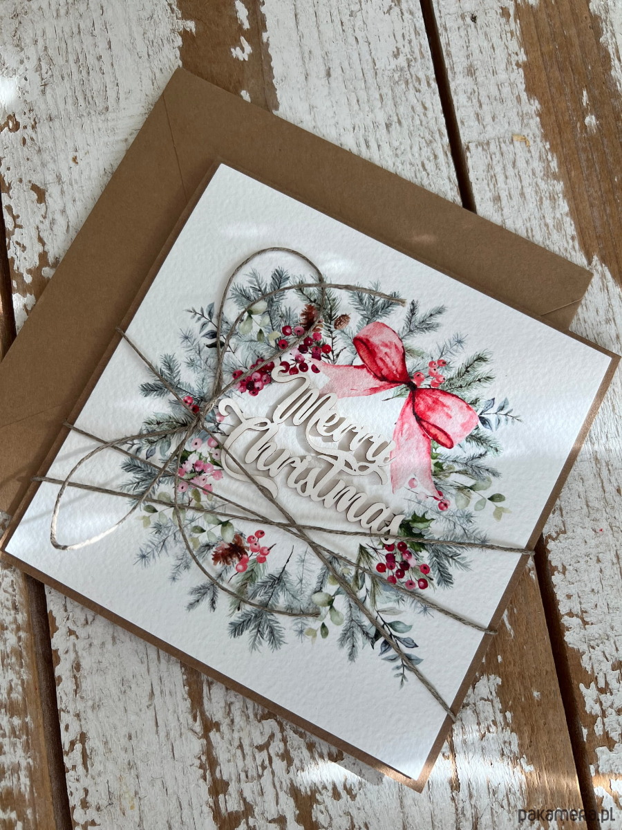 Stylowa ręcznie robiona kartka świąteczna Merry Christmas