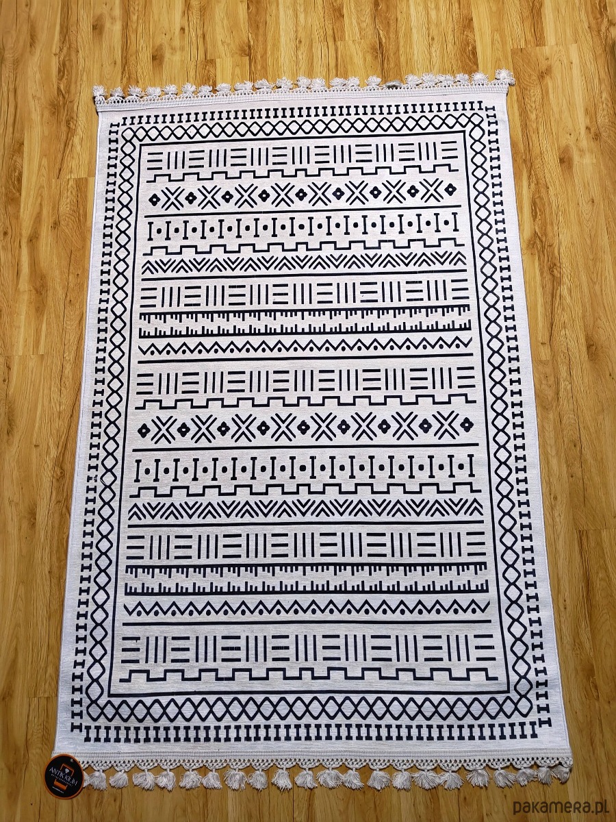 Wprowadź styl i harmonię do swojego wnętrza z tym eleganckim, bawełnianym dywanem o wymiarach 120x180 cm. Wykonany w 80% z wysokiej jakości bawełny, ten dywan zachwyca prostotą i nowoczesnym wzornictwem – biały kolor z czarnymi, geometrycznymi kształtami sprawia, że doskonale komponuje się z każdym stylem aranżacji: od skandynawskiego, przez boho, aż po minimalistyczny.