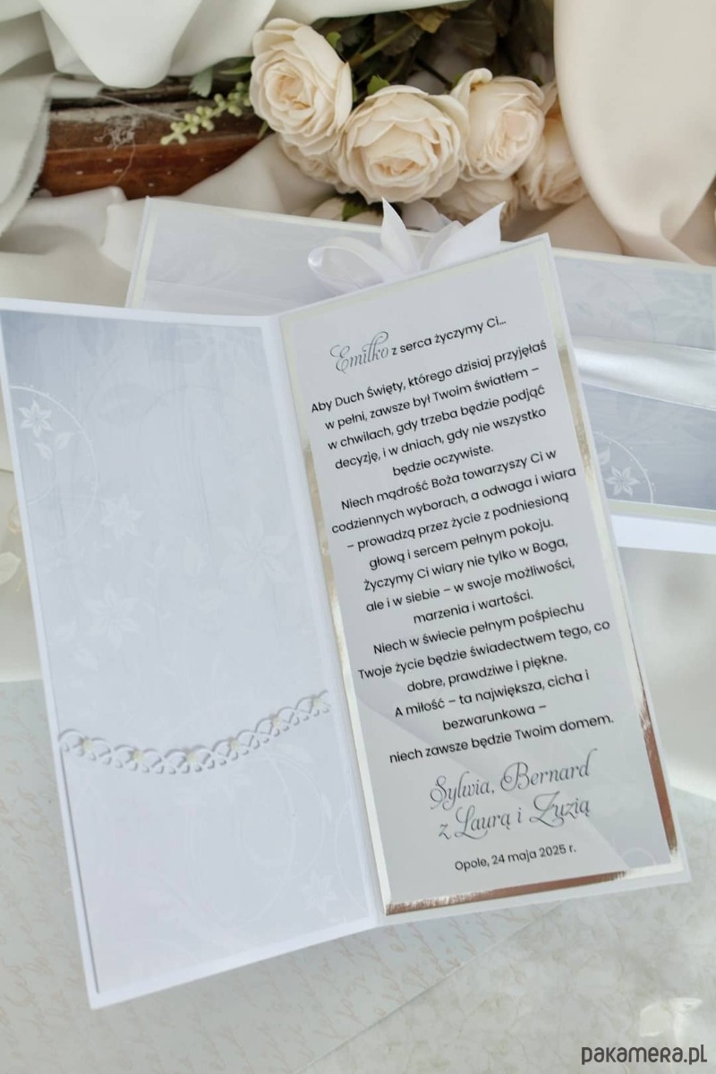 Delikatna, elegancka, zaprojektowana z myślą o tym, by towarzyszyć w ważnym dniu bierzmowania.