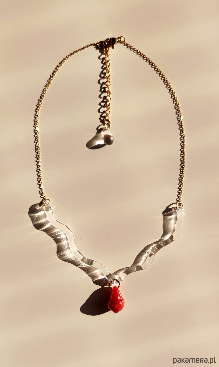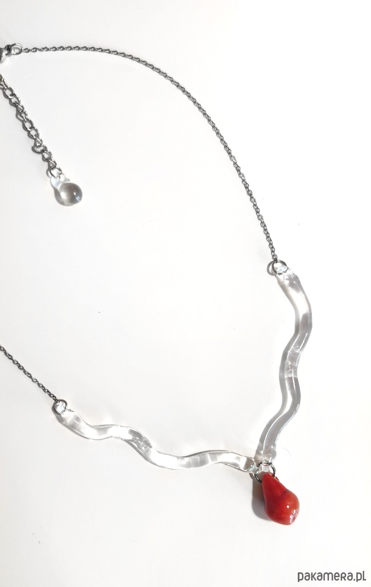Subtelny naszyjnik fala z czerwoną kroplą "Coral"