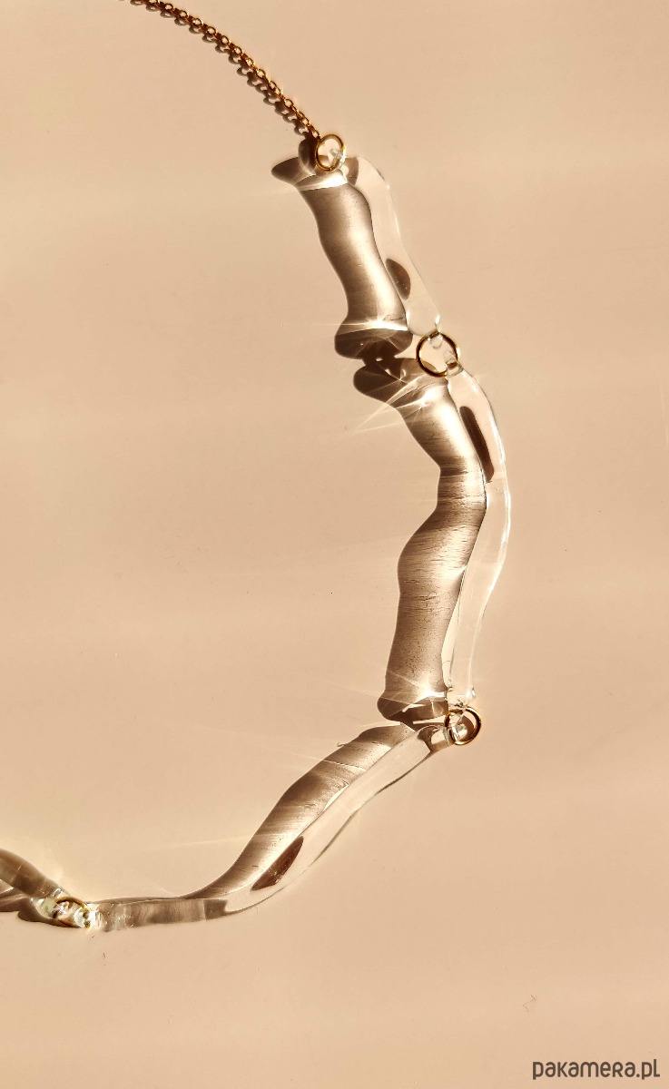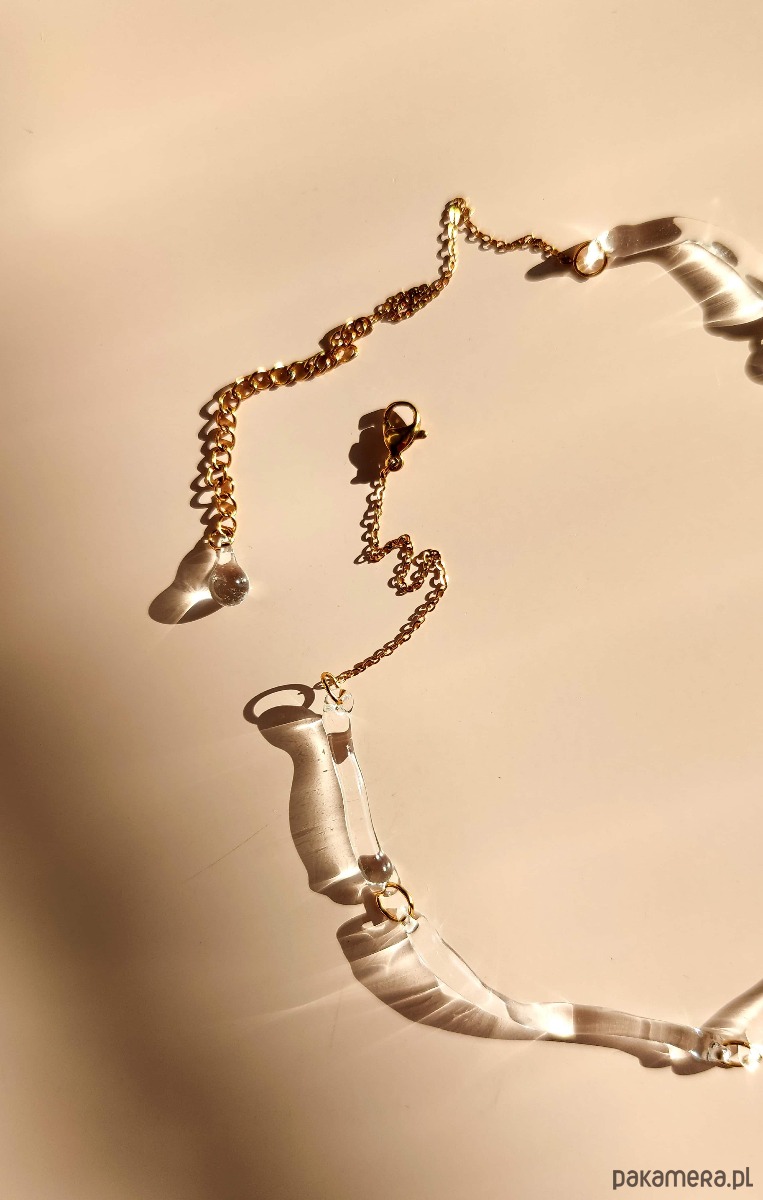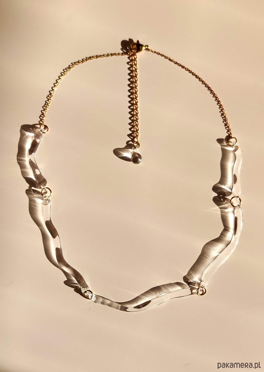 Subtelny naszyjnik łańcuchowy "Coral" ze szkła o nieregularnym kształcie