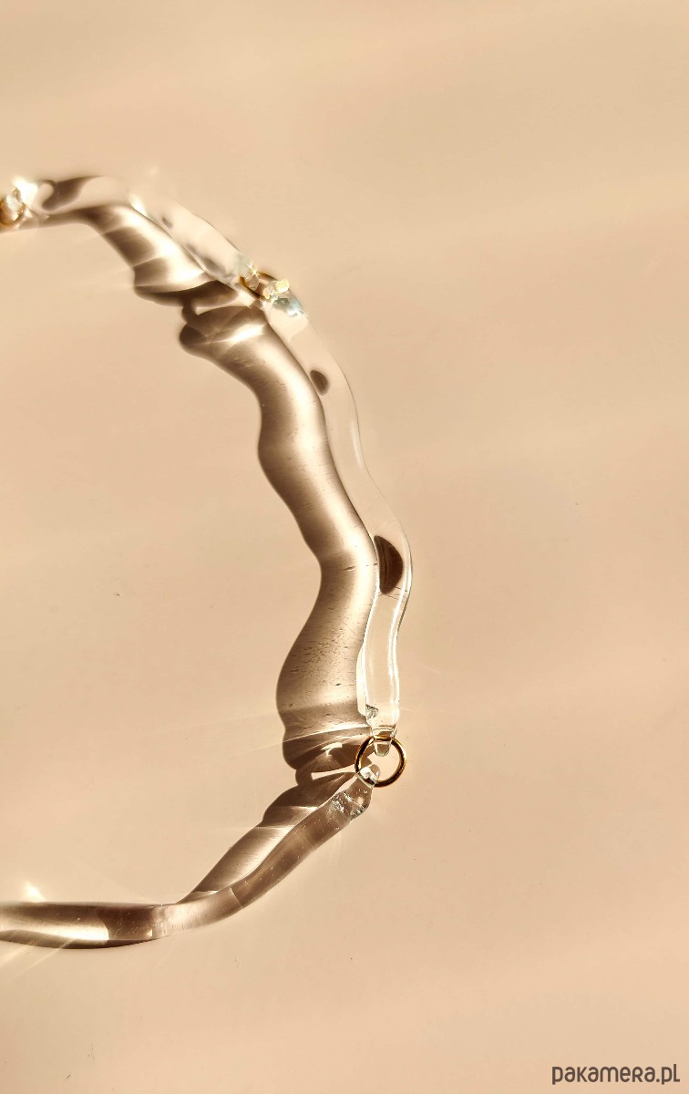 Miękka linia szkła swoją formą przypomina spokojne fale. Szkło pozbawione zostało koloru, lecz pełne jest światła – zamkając odbicie tafli wody w trwałej formie.