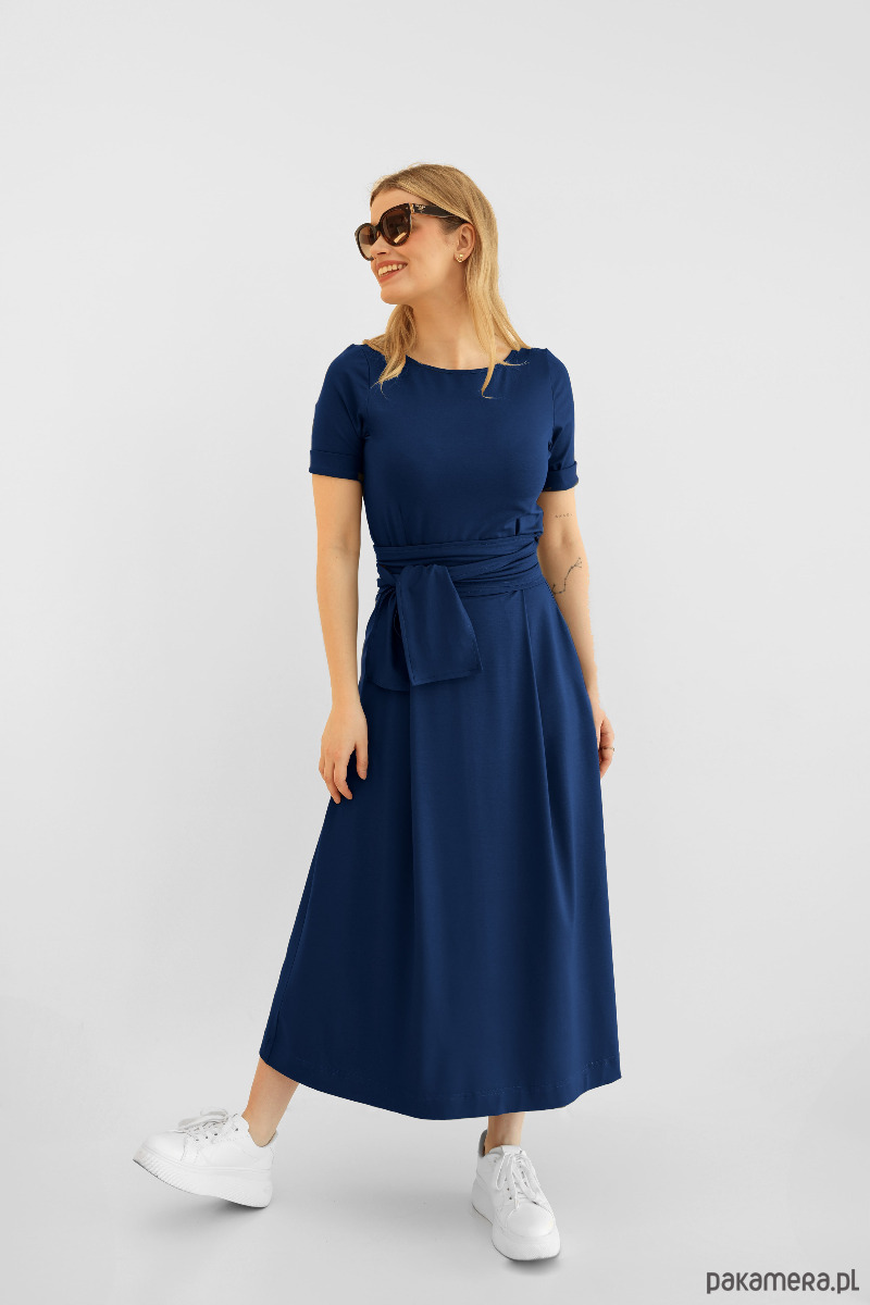 Dodatkowym elementem ozdobnym jest materiałowy pasek, którym według uznania, możemy obwiązać się w talii lub nie.