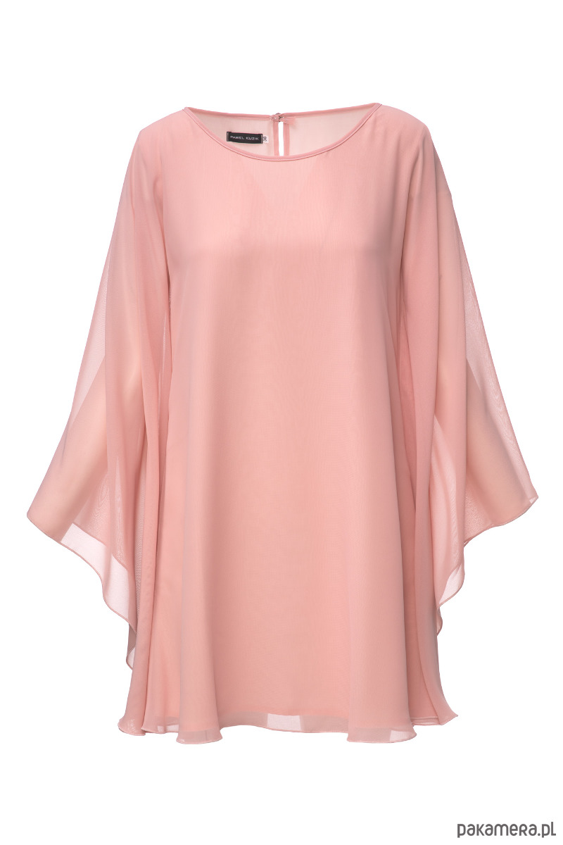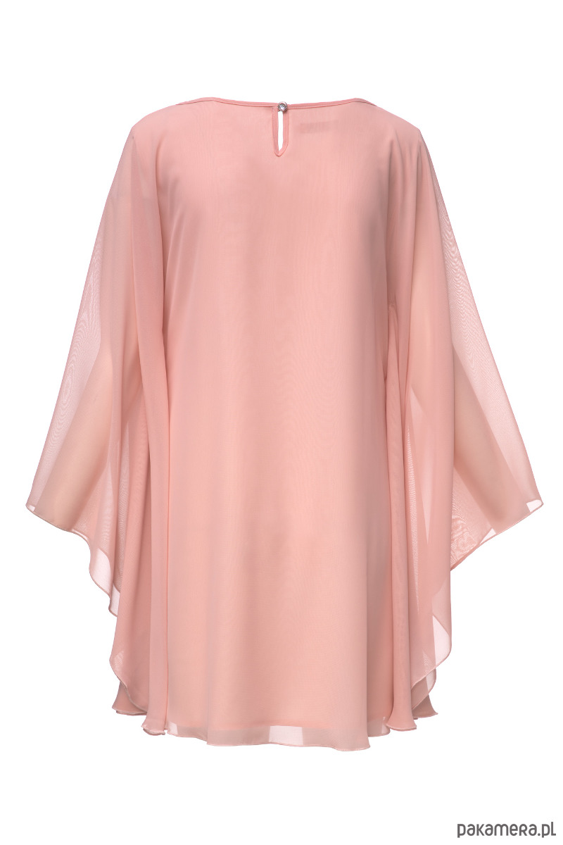 Oryginalna sukienka o luźnym kroju uszyta z szyfonu w kolorze pudrowego różu, na podszewce.