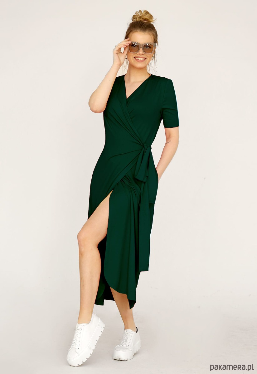 Afra to sukienka kopertowa, zakładana szlafrokowo, lekko dopasowana. Subtelnie podkreśla i modeluje biust niezależnie od jego rozmiaru.