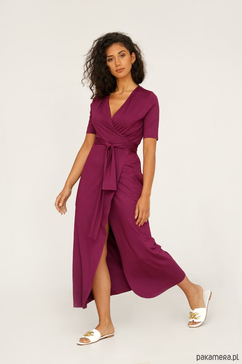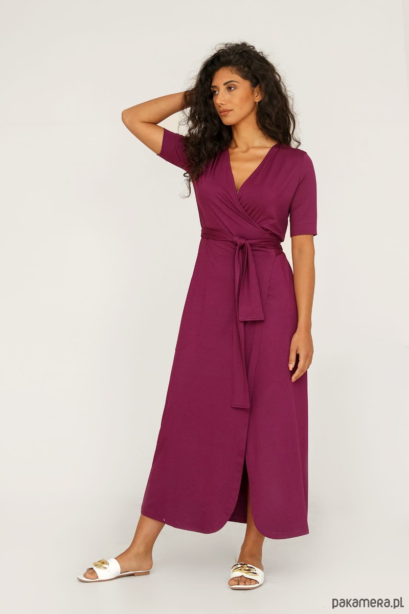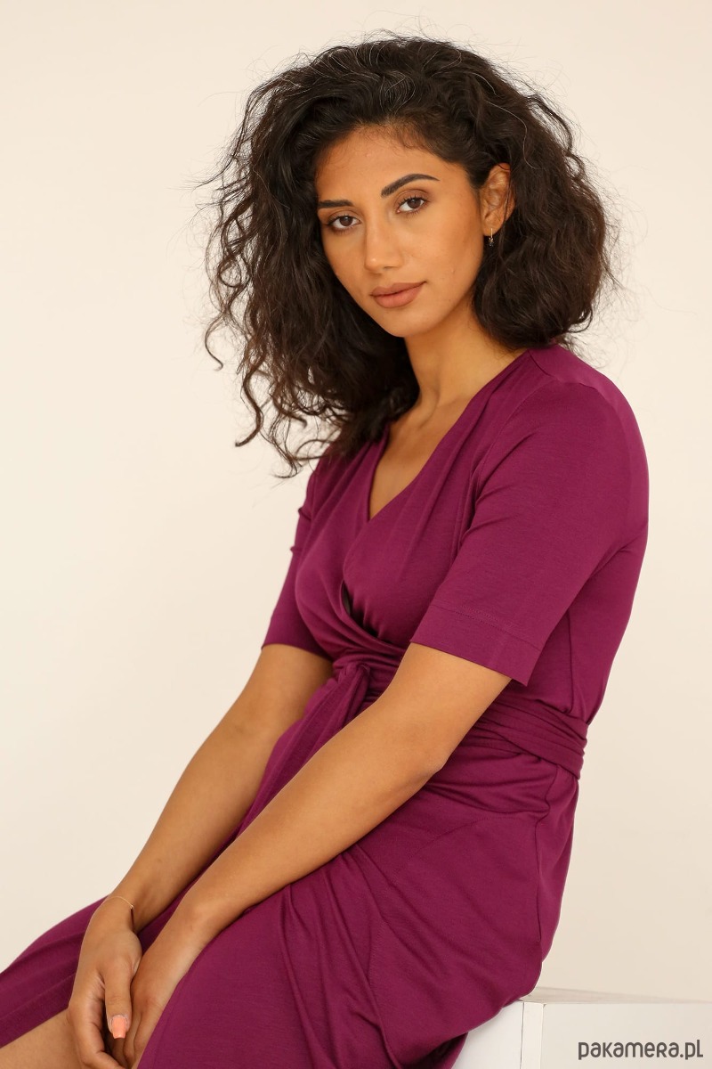 Afra to sukienka kopertowa, zakładana szlafrokowo, lekko dopasowana. Subtelnie podkreśla i modeluje biust niezależnie od jego rozmiaru.