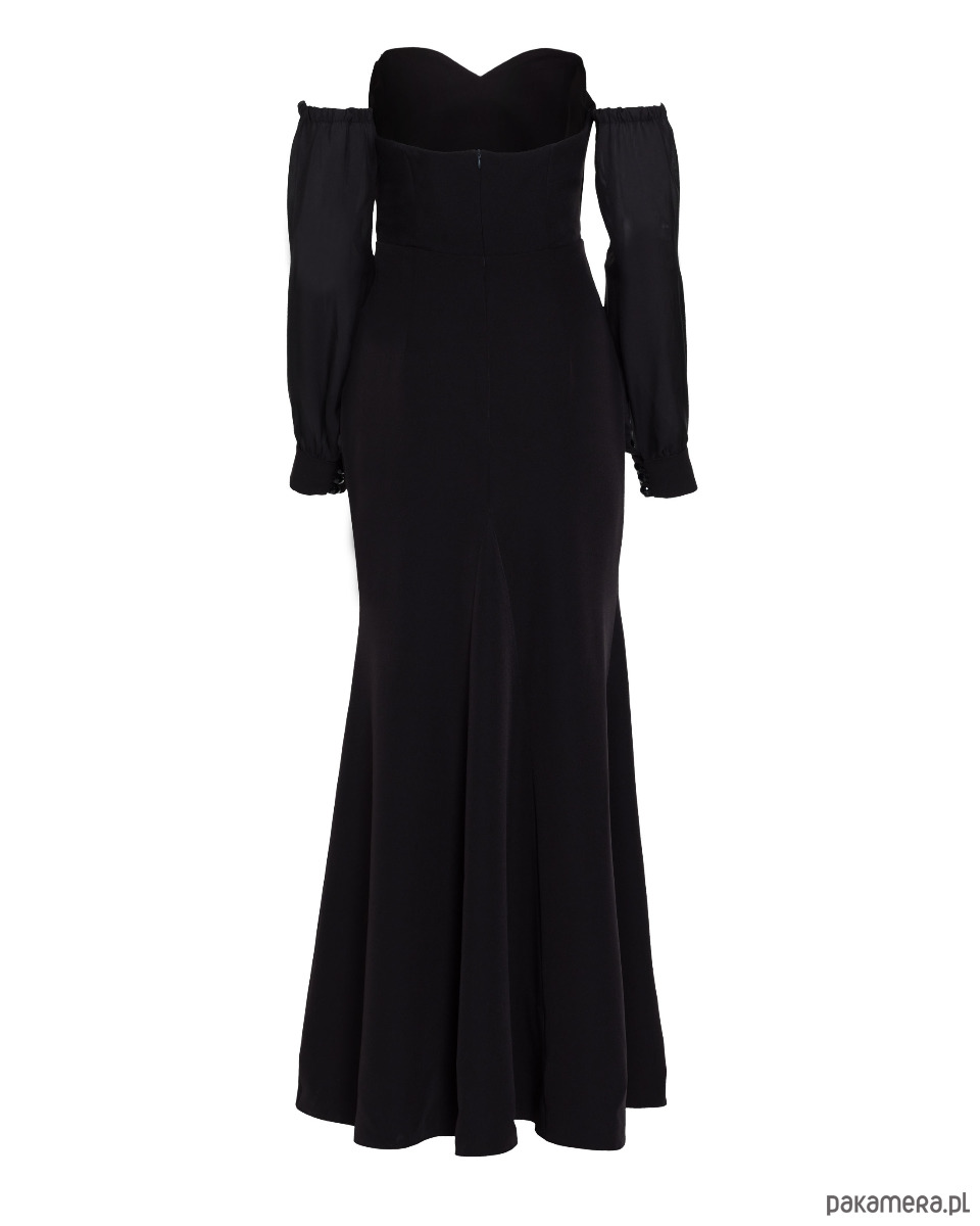 Modna sukienka z bufiastymi rękawami, wykonanymi z tiulu, wykończone mankietami z zapięciem. Idealny wybór na studniówkę lub bal!